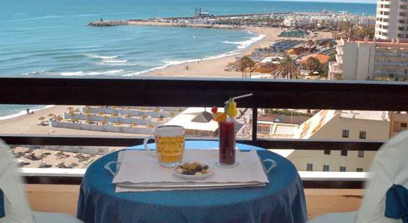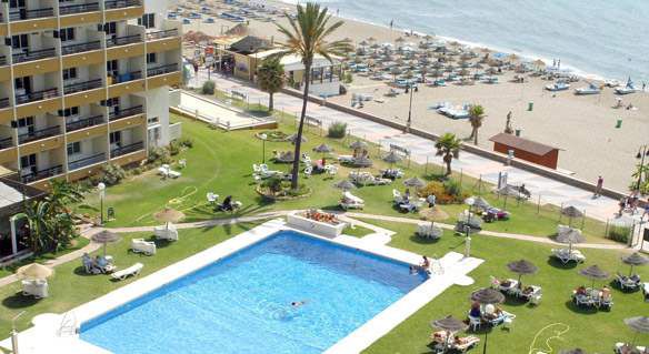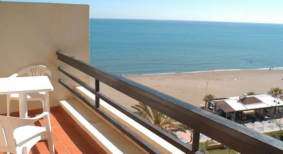 в городочке Torremolinos, в 9 км от аэропорта Малаги, в 2 км от центра города, на первой линии (в 30 м от пляжа Carihuela).