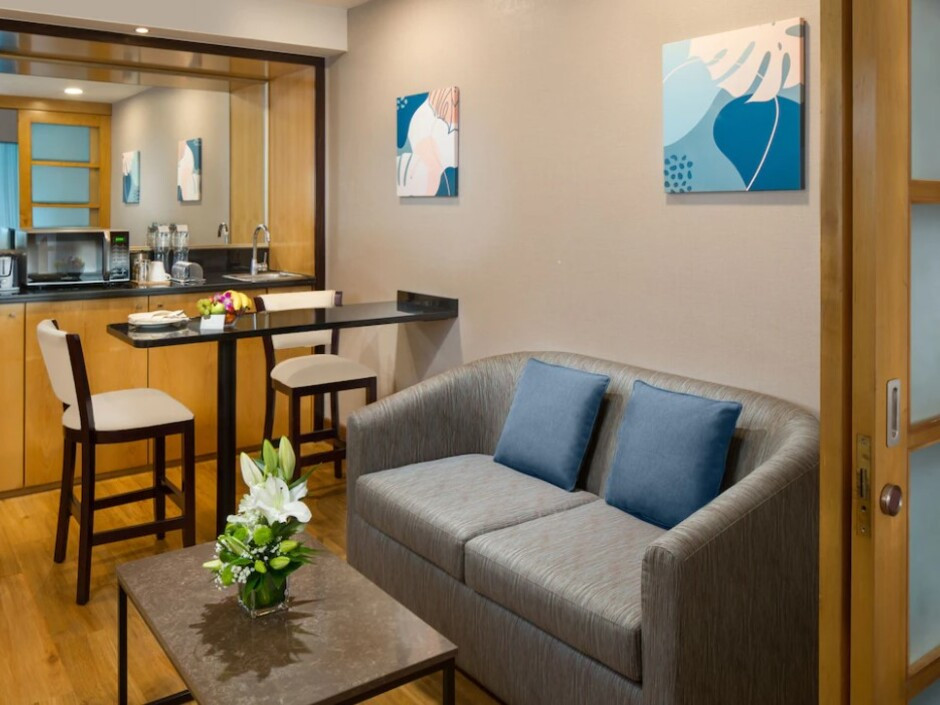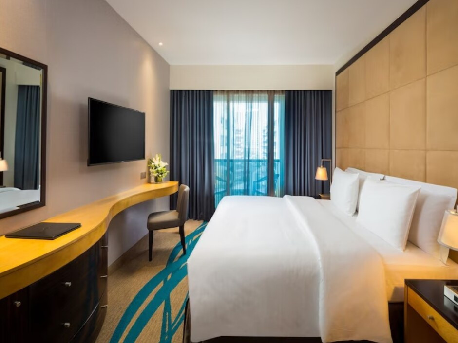 Расстояние от Международного аэропорта Дубай составляет 9,6 км (20 минут езды), от аэропорта Аль-Мактум — 60 км.