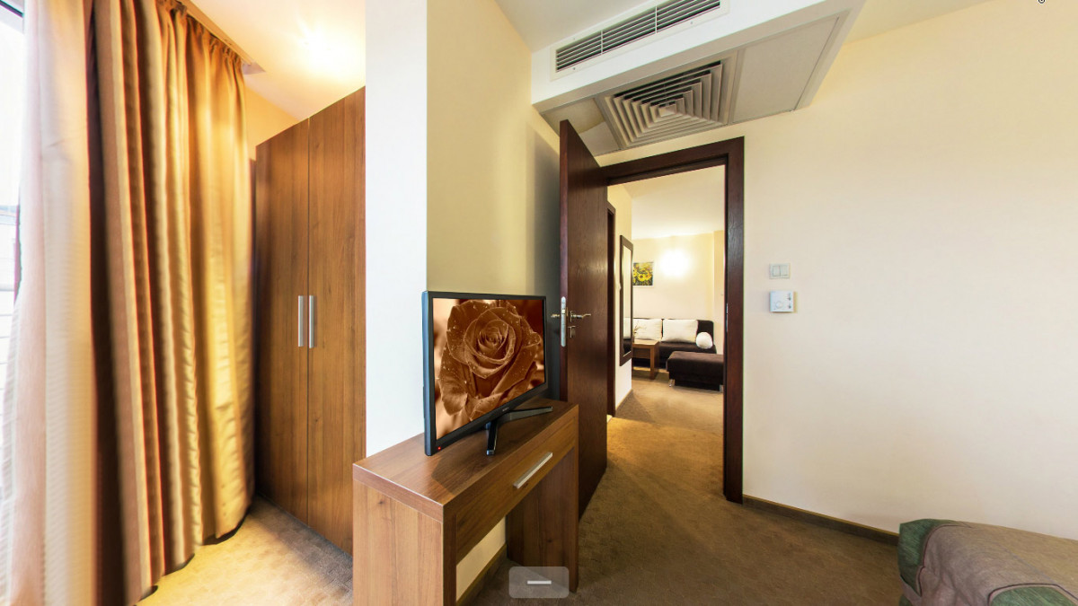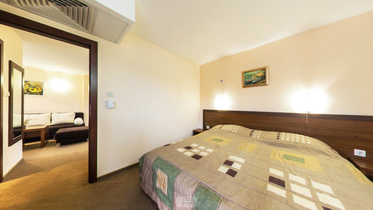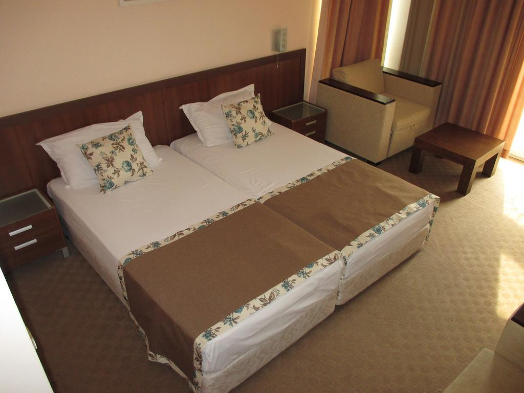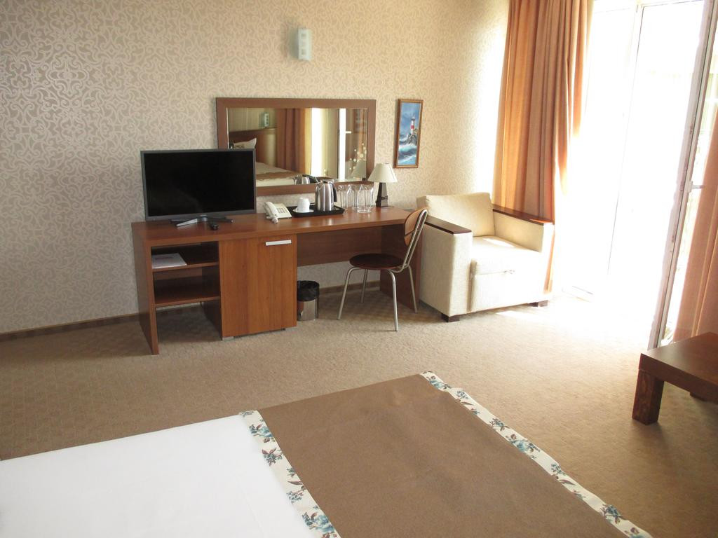 в курортном городке Св. Влас, в 40 км от аэропорта города Бургас, в 500 м от центра города и в 20 м от пляжа.