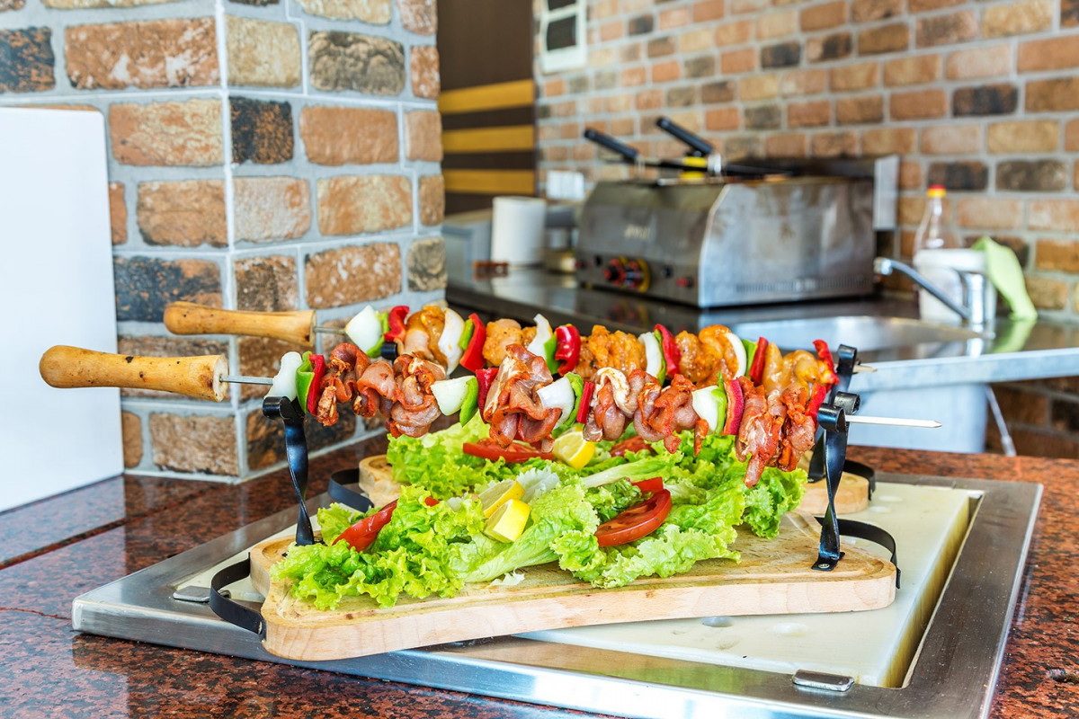 В центральной части курортного комплекса Солнечный берег, в 30 км от аэропорта города Бургас, в центральной части курорта, на берегу моря.