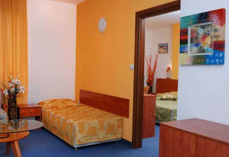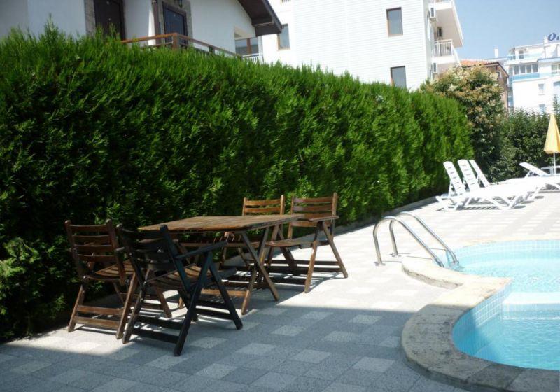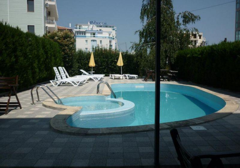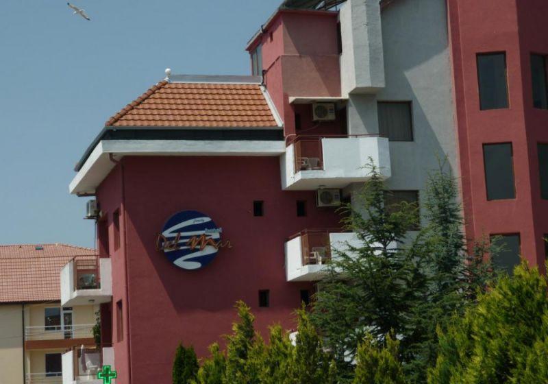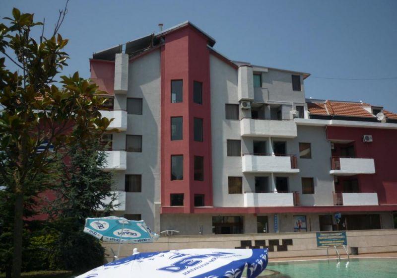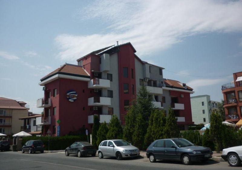 в курортном городе Несебр, в 27 км от аэропорта города Бургас, на главной улице, которая связывает Несебр и Равда, в 200 м от пляжа и в 1 км от центра города.