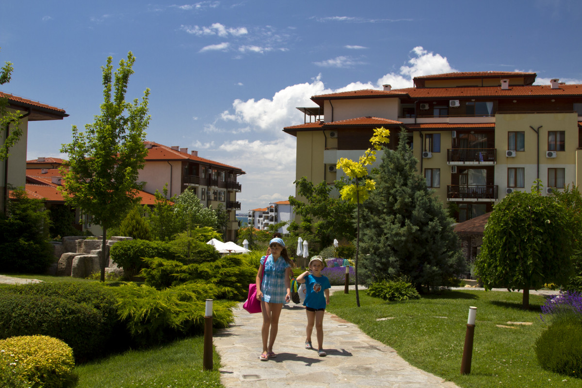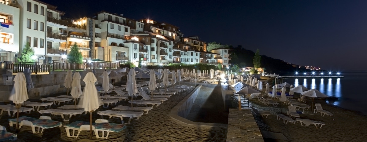в курортном поселке Св. Влас, в 40 км от аэропорта города Бургас, в 2 км от центра города, на берегу моря (20-300 м до пляжа).
