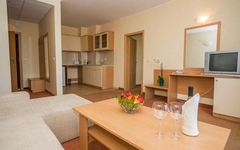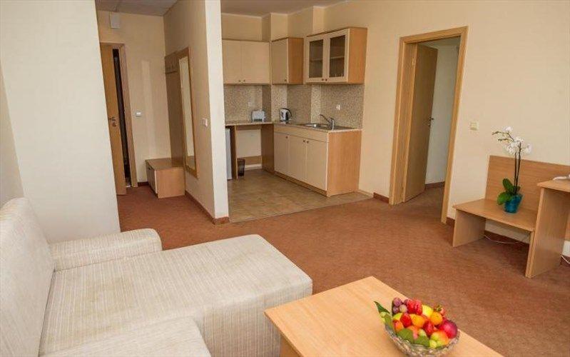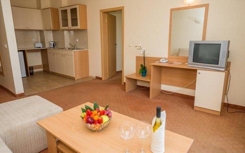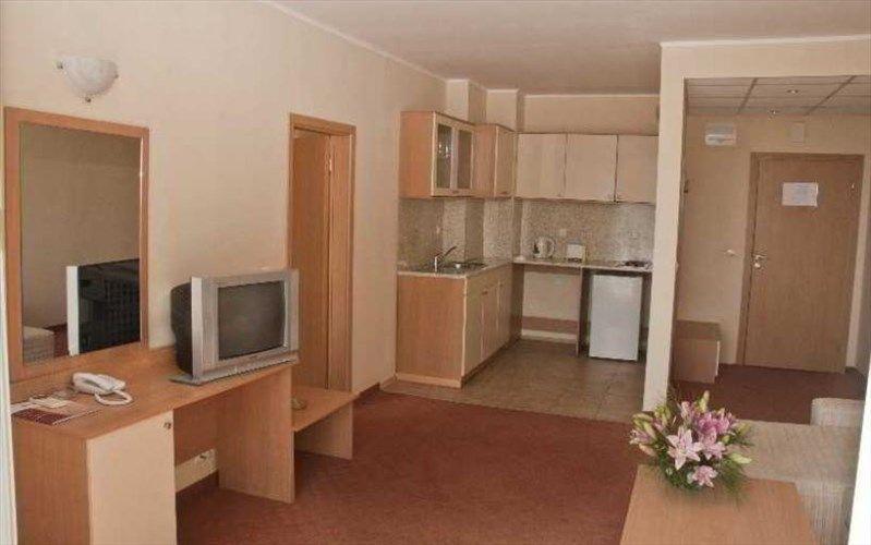 В курортном комплексе Солнечный Берег, в 35 км от аэропорта города Бургас, в 1 км от центра курорта, в 200 м от моря.