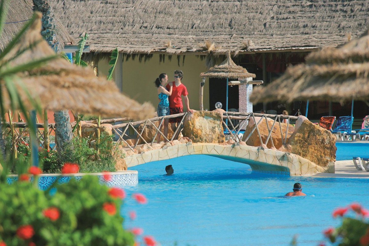 Были в этом отеле с 13.08.18 по 24.08.18 семьёй из 4 человек - 2 взрослых и 2 детей 9-10 лет. Прибыли в отель примерно в 20.00, разместили сразу, предложили 2-хэтажный номер 2135 с видом на бассейн. Номер соответствует 3*, из мебели - кровати, табуретки вместо прикроватных тумбочек, встроенный шкаф, на балконе пластиковые стулья и стлик. В общем, вполне уютно. По вечерам слышно было анимацию и музыку, которая играла на сцене. Но наши дети засыпали без проблем после целого дня в бассейне или на море, и поэтому нас это не особо беспокоило. В 23.00 всё заканчивалось и становилось тихо. Только можно было изредка услышать громко отдыхающих туристов:) Уборка была не каждый день, полотенца в номере меняли только при нашем обращении. Персонал при этом улыбчив. Ситуаций с воровством не было, несмотря, что сейф не брали - ценные вещи и деньги хранили в чемодане под замком. Питание простое - макароны с томатной пастой, жаренный картофель, свежая капуста, тушенные кабачки, рис нескольких видов, нарезанные на четверть помидоры, салаты из огурцов с капустой, с помидорами. Из мясного - была один раз печень, а так каждый день курятина и иногда индейка. Но в момент нашего заезда было очень много гостей из соседнего государства - Алжира - поэтому в столовой творился хаос. Тарелок, ложек и вилок не хватало, и столов тоже. Гости из Алжира засидали за столами по часу, и оставляли после себя невообразимый мусор, что официанты не успевали убирать. В барах их обслуживали без очереди. После нескольких жалоб российских туристов своему туроператору, ситуация через 4 дня изменилась. Все стали вставать в очередь и бармены уже обслуживали всех только по очереди. Алкоголь и напитки были разбавлены водой. Потом стали наливать напитки из бутылок. С 20 числа, когда уехали гости Востока, прибыло много туристов из России, Украины, Германии, Франции и Англии. Из России больше всего. И сразу стало веселее - аниматоры стали подходить к туристам, общаться, подсаживаться в столовой. Сама анимация стала более подстроенной под российских туристов. Аниматоры - отличные ребята, весьма терпеливы к детям, на мой взгляд даже чересчур. Процедуры в хаммаме состояли из простого сидения в парилке, потом просто шаркали тело с мылом и вихоткой - это похоже был пилинг - затем все тело мазали глиняной смесью, опять парилка, смывание, жгучая маска на лицо, смывание маски, крем на лицо, и в конце массаж. Обещанного обертывания водорослями не было. Самое стоящее из этого был массаж. Сказав девушке, что у меня проблемы с шеей и спиной, я получила удвоенную порцию массажа на спину и шею, чему весьма рада. За эти все процедуры заплатила 200 динар, но думаю, что больше 100-130 динар это не стоит. Экскурсии предлагали разные. Пиратский корабль весьма не большой - но 2 автобуса стоя вместились:) Программа на корабле слабая, дельфинов не увидели, кормили скромно. После поездки, я подошла к капитану, который нам продал эту экскурсию и выразила разочарование. Он позже принёс детям, как компенсацию за неувиденных дельфинов, по 2 мороженного. Отель расположен недалеко от столицы Тунис, можно добраться на такси сравнительно недорого. Мы сами не ездили, но соотечественники рассказывали, что это не проблема. В общем, если не быть придирчивым, то вполне можно отдохнуть. Конечно на 4* звезды отель не тянет. Вероятно стоит запастись монетами в 1 динар, чтобы да