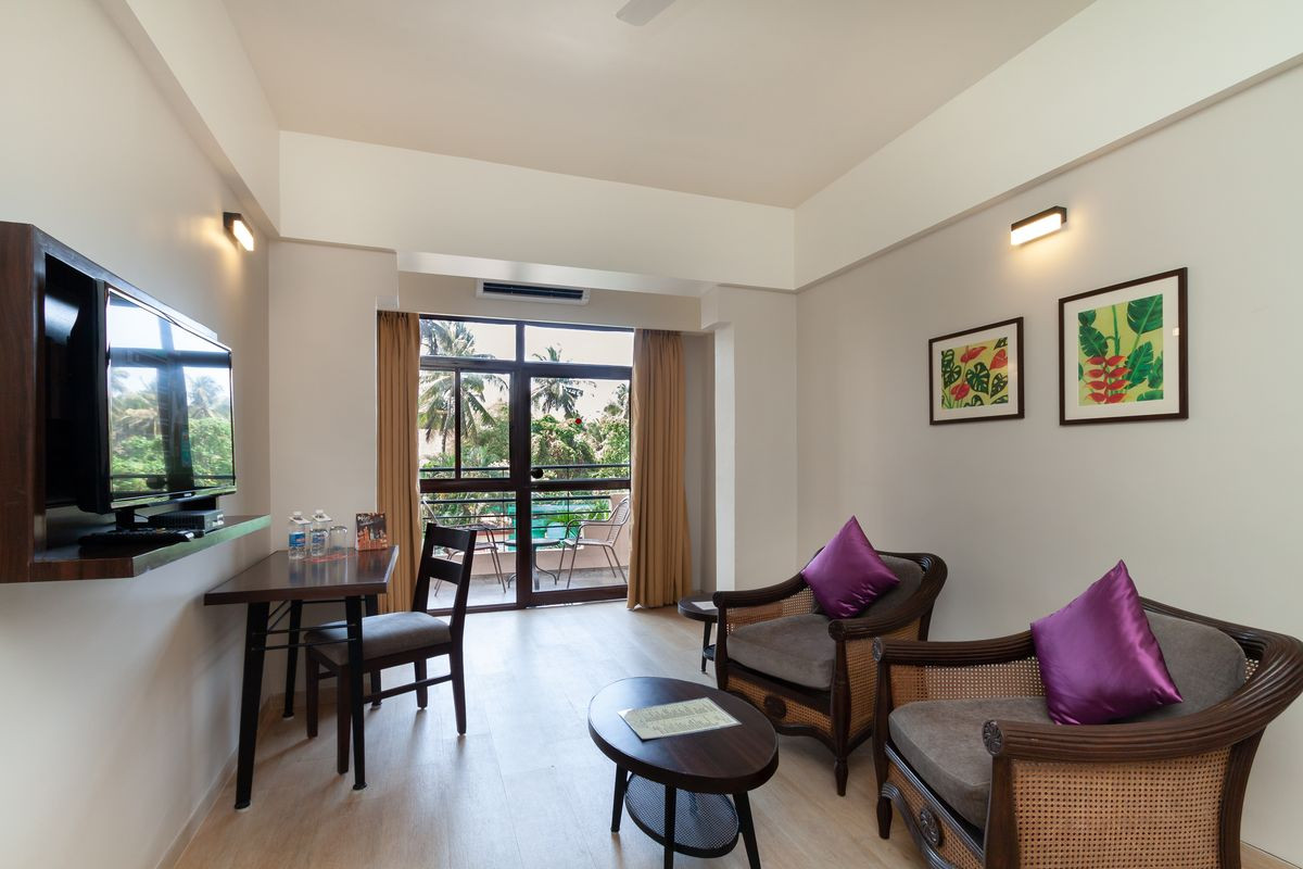 отель хороший, отдыхаем там каждый год, с 14 года и все устраивает. Доступность всего: магазы, рынок, где можно купить креветки, тунца и все что угодно. От пляжа 800 м. По вещам не шарятся, если надо прибрать, приберут, нужно только попросить. Прямо в номере есть кухня и можете готовить, только плитку нужно взять с собой, мы берем и порядок. В общем, хороший отель для Индии.