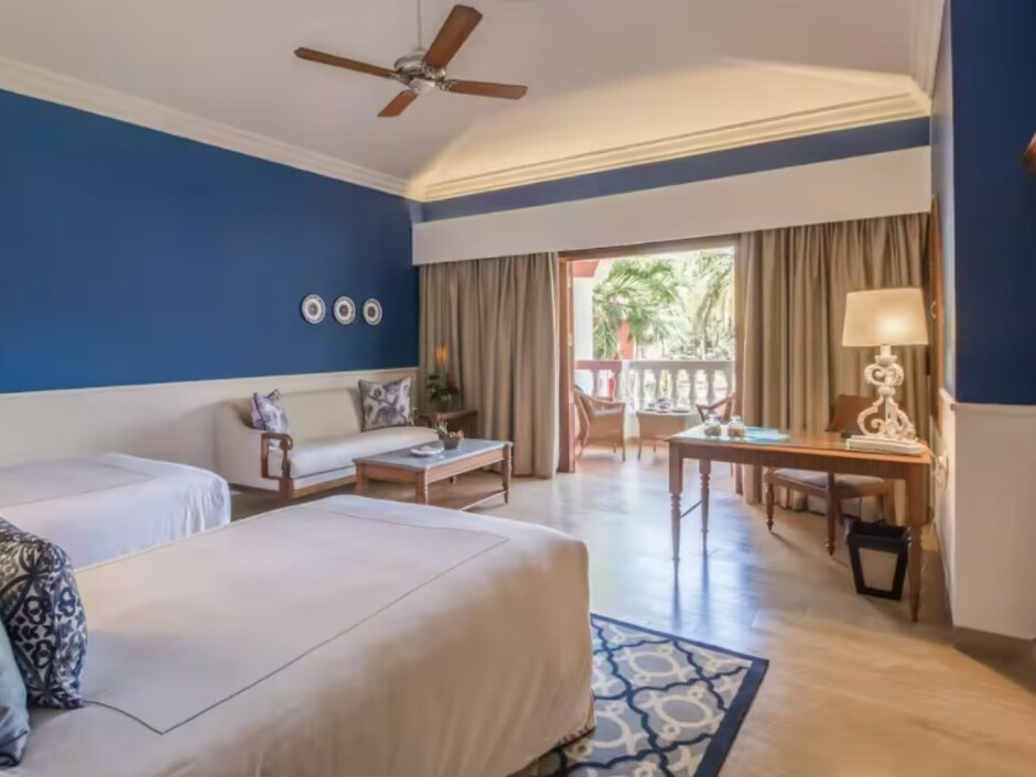 В 27 км от аэропорта Дамболим, на Юге Гоа, на пляже Бенаулим, на 1-й береговой линии.