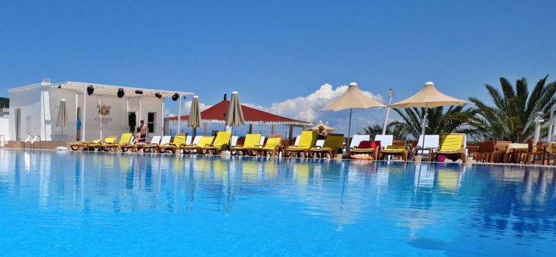 В первом секторе находится ресепшн, ресторан, бассейн и три этажа с номерами (standard room). Во втором секторе находится бассейн и блоки состоящие из 7-8-9 комнат типа UP FLOOR, имеется лифт, в данном секторе нет ресторана.