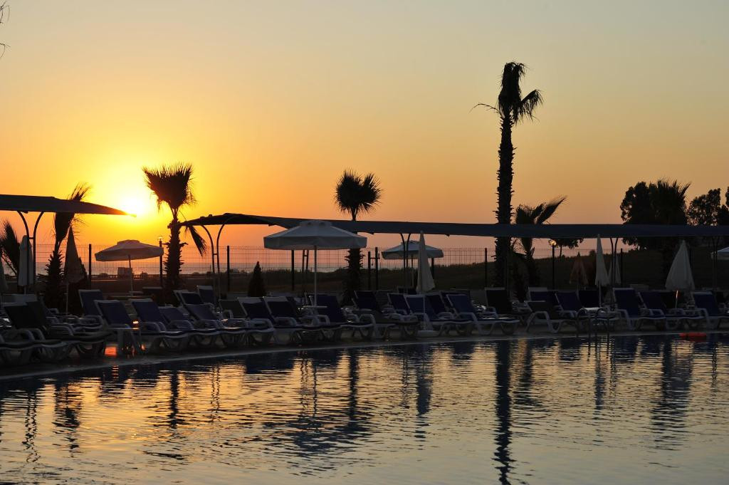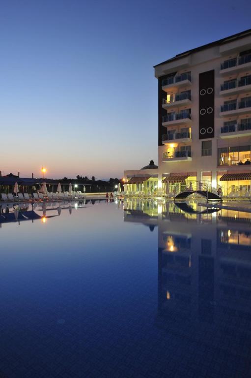 Отель лучше,чем ожидали. Сервис на высшем уровне. Очень старается персонал, мою, чистят, поливают, ухаживают за территорией. У нас был 5 этаж и семейный номер с 2мя комнатами. Каждый день убирали в наше отсутствие и наполняли бар - соки, вода, всегда свежее. Питание очень разнообразное, от сёмги до говяжьего языка. На ужин вино. На баре в лобби и у бассейна огромный выбор коктейлей. Аниматоры - по вечерам беби диско, днём на бассейне игры и танцы фирменные и зажигательные. За 6 дней была турецкая ночь шоу и бразильская ночь, просто потрясающая. Даже не смущало,что рядом с отелем стройка, их не было слышно абсолютно. Море чистейшее, собственный пляж и милый дядечка, который всегда бежит протирать шезлонг. Вход в море пологий, да камни есть, но мой сын например отказался от тапок для моря и так ходил. Я предпочитала плавать с пирса. Единственный минус для меня это отдаленность от аэропорта, нас сан фан вез более 2х часов из них 15-20 минут мы провели и туда и обратно у магазинов.