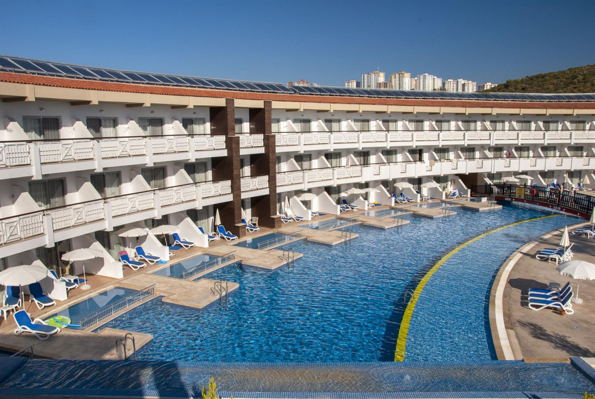 Были с 28 августа по 4 сентября 30-32 градуса воздух. Отель 4 звезды и точка. Плюсы: - Расположение «бассейн, море и горки» очень удобное. - Еда твердо нормального качества. - Алкогольные напитки нормальные. - Персонал приятный. - волны на море. Не плюс и не минус: - Разновидностью еды не балуют, но качество закрывает недостаток. - Анимация 6/10. Для детей до 10 лет подойдет. - ветер можно переносить. (внимание!) МИНУСЫ основные - по убыванию)) - бассейны для горок и детских горок были очень холодные. Главное расстройство. Каждый пятый ребенок наверное ходил туда. Не грели, а ветер добавлял все оставшееся желание, но минут через 20-30 приходилось (( привыкать ОГРОМНОМУ дискомфортище. - бассейн который грели, не чистый. Я лично брезгливый. Приходилось переходить в бассейн рядом (полукруглый) тоже вроде гретый бассейн но очень чистый, для спокойного плавания. - Фанатам плавания на море, к сожалению можете расстроится. 1. Песка сухого нет. Галек (камни диаметром 3-5 см и более при входе на первые 10 метров (дальше норм-песок) и грязь сухими и сгнившими какими-то водорослями. Тапки нужны при входе на море. Сразу не глубокое, надо метров 50 пройтись. Из-за этих важных ньюансов было ОЧЕНЬ минимальное посещение моря- человек 5-7 за весь отель. Первый раз видел такое количество людей плавающих, думал что то случилось. - далее бытовые не обязательные минусы, мелочь. Заключение: можно прийти сюда, если очень жарко, наверное где то июль и начало августа, быть может не будет холодно в горках и если вы равнодушны к морю. Добрый отель с твердой четверкой!