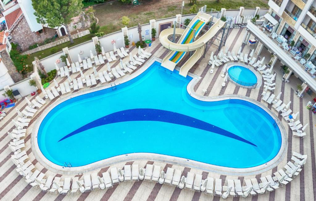 Отдыхали с мужем с 30 июня по 8 июля, все отлично! Расположение: 1 линия, свой пляж (небольшой, но все помещались), до центра пешком 40 мин либо маршрутка, такси. Мы доходили, норм. Набережная красивая в обе стороны, ходите, гуляйте. Сервис: отличный, только на русском никто не говорит, английский, турецкий, либо гугл переводчик. Отель, номера: все не новое, но и не убитое. Питание: все вкусно, ассортимент большой, мяско, гарниры, овощи, фрукты, сладости (чизкейк бомба), фаст-фуд, кофе- брейк, ночной суп, напитки, алкоголь- все отлично, никто не жадничает, все улыбаются, на разбавляют. Быдла в отеле нет, все культурные, и отдыхающие и персонал. Приятно было там отдыхать! Будьте готовы, что вы будете одни русские в отеле: 70% это Англия, 20% Германия, 10% Польша, Истония,Италия, Греция. Примерно так. Анимация очень хилая, кроме зарядки в бассейне и вечернего шоу ( детская анимация 30 минут и 60 минут приглашённые гости), ничего больше нет, аниматоры сонные мухи, их не видно от слова совсем. Гости по вечерам играют в карты, лото, настолки, гуляют, пенсионерские вечера, дискотек нет. Мы сами себя развлекали - горки, настольный тенис, экскурсии, гуляли в центре. Бассейн в основном всегда занят, англичане в море почти не ходят, заранее занимайте перед завтраком. Вай фай слабай сторона отеля, в день отваливается миллион раз.... Ужасно бесил. Воду пополняют, шампунь, мыло, тапочки есть, полотенца меняют, убираются ежедневно, берите в номер фумигатор от комаров. Погода, природа, виды, горы, море- место прекрасное! Рекомендую! Вернулась бы обязательно, отелю 5!