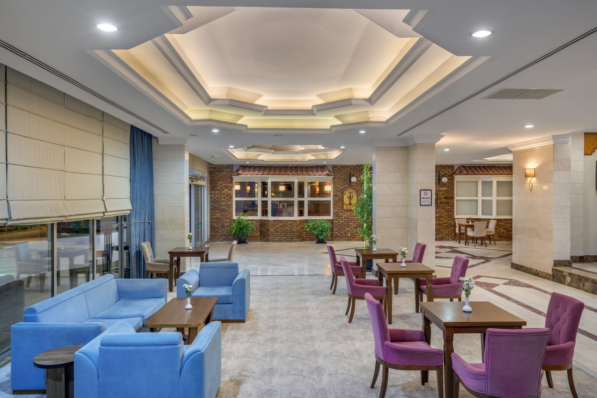 Отдыхали в этом отеле с 26.09 = 4.10. Отель старый, давно не делался ремонт. Большая ,ухоженнаязелёная территория . Хороший вход в море , песок и попадается галька. Питание: очень много рыбы ( сибас, дорадо, скумбрия, лосось) рыба и на обед и на ужин. Мяса нет .пару раз давали говяжьи или бараньи. Кости. Курица каждый день. Один раз была индейка , но не попробовали, она была с перьями. Возле розлива чая очень часто нет кружек, сказала персоналу, они ответили "наливай в стакан ". Официанты не носят напитки, один раз за 8 дней подошёл, спросил, что будете пить , мы очень удивились, оказалось просто приезжал какой-то менеджер с проверкой. Очень смешно было наблюдать, как на пляж выкатывали тележку с арбузом и дыней, раздавали отдыхающим , при этом фотографировали для отчёта и через 5 минут уходили. А-ля карт ресторан платный, бесплатно туда приглашают только немцев, нас не пригласили. Больше не вернёмся в этот отель.