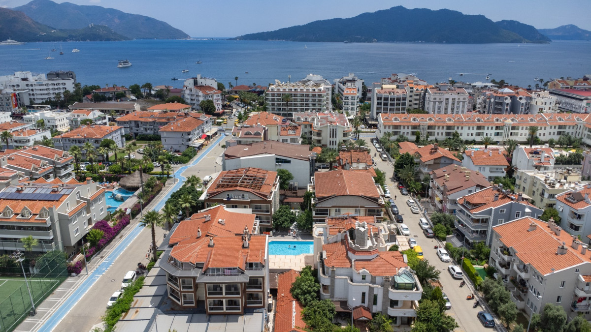 в 95 км от аэропорта Даламан, в 130 км от аэропорта Милас Бодрума, в 800 м от центра Мармариса, в 200 м от городского пляжа, в 3 км от собственного пляжа.