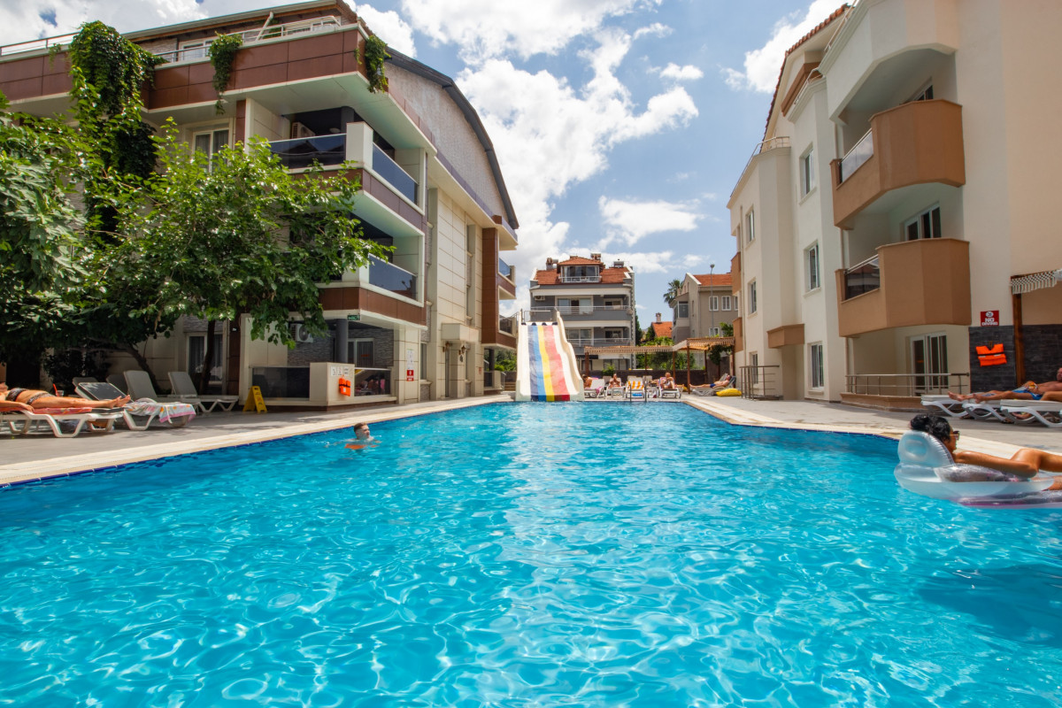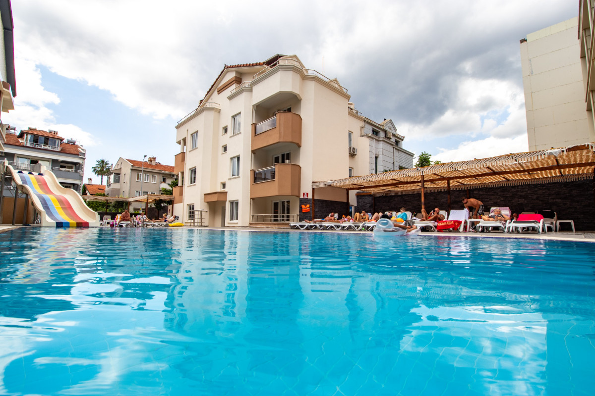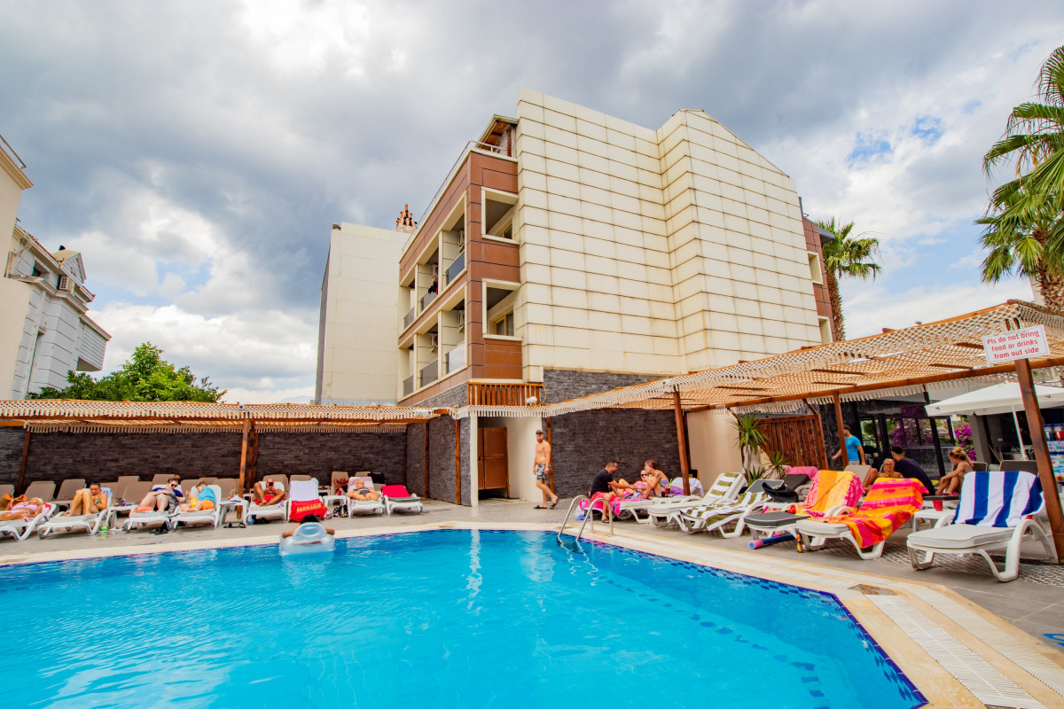 Прилетели мы вчетвером в 12 ночи, разместили нас на разных этажах, прокомментировав, что все номера заняты, завтрак был с 8, мы спустились в 8.30, есть уже было нечего, кроме яиц, мы попросили сменить номер, т.к наш был под крышей и было жутко душно, нам пообещали через 2 дня, как съедет народ, но интерес был в том, что отель на тот момент состоял из 15 гостей, включая нас. Номер нам так и не поменяли, полотенца, как и постельное белье, за все 10 дней нам поменяли 1 раз и то неполный комплект, в номерах не убираются. На обед одно и тоже, горячее накладывает повар, все мясные блюда очень острые, есть было невозможно, из фруктов только арбуз и тот накладывали сотрудники отеля, бар был каждый раз пустой, то сока нет, то пива или простой воды, про алкогольные напитки я даже не говорю, разнообразие из 1 вкуса. В свободном доступе по кафе разгуливают кошки и муравьи, спят на лежаках у бассейна. А к середине отпуска появились и рыжие тараканы. Пляжа у них своего нет, есть у этого же отеля, но 4*, нам не говори о том, что мы можем воспользоваться их пляжем и шезлонгами. Отпуск был испорчен отелем, но сам Мармарис потрясающий . В Мармарис вернемся, а отелю посоветовали бы научится убираться с моющимися средствами.