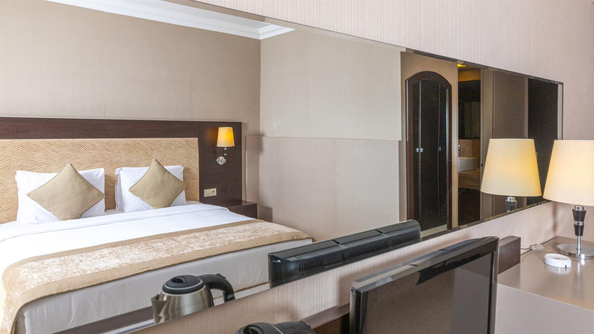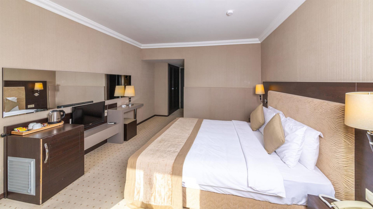 Про пять звезд можно забыть. Из положительного: это питание и море! Номер нам дали с ремонтом 20 летней давности, кондиционер показывает 18 градусов, но дует на 25. Пошли менять номер, оказалось, что очередь стоит на обмен номера. Переселили в номер получше, но с ремонтом лет 10 назад на скорую руку. Приехали на неделю. За это время полы типа помыли 1 раз, изобразили замену белья 1 раз (наволочка как была с пятнами, так и осталась). Полотенца вроде меняют, но когда его разворачиваешь, то видишь пятна огромные и даже не знаю от чего, но первые мысли были, что пятна после интимных встреч кого-то. Запах стираного полотенца отсутствует, а вот пляжное пахнет. В душе вода сама по себе меняет температуру от холодной до кипятка, при этом кран можно не крутить... на рецепшене очень душно и жарко, иногда воняет туалетом. Ну и положительные моменты: местечко замечательное, пляж хороший, но очень простой для 5*. Питание разнообразное и очень быстро все работают в ресторане, правда, один кондиционер на весь ресторан и в жару с тебя стекает сто потов. За такие деньги я бы не рекомендовала бы этот отель. Как 3* еще пойдет