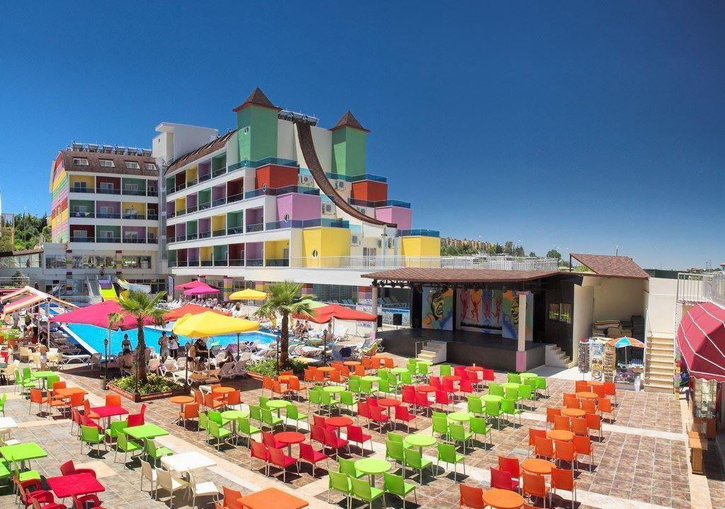 Отдыхали в июле месяца 10 дней. Это наш первый опыт, такого отдыха в Турции, хотя в Турции не раз отдыхали. Мы были в шоке. Единственное, что радовало, это море. При заселении нас можно сказать не встретили , даже не поздоровались, персонал молча, нехотя отдал ключи от номера, ничего не объяснили, где что находится, такое ощущение было, что они немые. По русский персонал не говорит. Приехали мы к ужину. Были голодные, так как был долгий перелет, в самолете не кормили. Пошли искать где покушать. Нашли столовую по запаху мяса) По дороге в столовую, спускались по лестнице, было душно и запахло канализацией и такое ощущение, что пахло везде потом( В столовой мы еле нашли стол, всё было занято, позже была проблема найти тарелку и приборы. У официанта просила вилку, он принес ложку. Встала в очередь за мясом, что-то готовили на гриле. Впереди меня было человек 30. Простояла минут 20-30 мин. очередь не сдвинулась. Как стояла, так стояла. Не дождавшись мяса, ушла с очереди. Набрала в столовой, что осталось и поела, в основном овощи тушенные. Увидели на столах у многих водичку в пластиковой таре 200 мл. Искали где она, в итоге сами нашли её, когда увидели как её берут с коробок возле бара. Очень шумно было, такое ощущение, как на базаре, даже разговаривать невозможно. Потом пошли искать интернет, хотели WiFi, так как нужно было хотя бы выйти на связь, чтобы связаться с родителями. Подошли на ресепшен, там сказали платный WiFi, мы им деньги, сказали сейчас не можем подключить WiFi, не работает, проблема, возможно решится. На выходе из отеля встретили местных турков, они работают в SPA, раздали нам интернет. В итоге решили купить Симку с интернетом, так как без связи никак. Что хотелось сказать в целом про уборку: по требованию, просто подмели и всё, мебель не двигают, под кроватями слой пыли, игрушки детей от прошлых отдыхающих. Полотенце просила заменить на 3-4 день, говорят финиш, идите на ресепшен. Шампуни и гели выдавали по требованию. Шторы и тюли в номере грязные. Окна в отеле грязные. В отеле есть кондиционеры, но их не включают, очень душно, жарко, везде пахнет потом. На полу плитка, очень скользко. Несколько раз чуть не упала сама и дети, особенно если кто-то, что-то разольёт, сок или воду. Мы жили в пятиэтажном корпусе, на третьем этаже кнопки лифта на работали, то есть мы не могли спуститься вниз на лифте, только пешком. За два дня до отъезда совсем перестал сначала работать один лифт, за день до отъезда второй лифт сломался. Поднимались и спускались с нулевого этажа до третьего этажа пешком по лестнице. Лежаки возле бассейна всегда были заняты, говорили, что их занимают в 4-5 ч утра. Нам было все равно на них , так как мы в основном были на море. Горки работали по времени до обеда и после обеда, детям понравились. На пятый день отдыха, за пол часа до ужина решили занять очередь за мясом, были четвертые в очереди, впереди были местные отдыхающие с Турции. Им накладывали больше мяса по 3-4 кусочка, а нам 1-2 и иди. Говорю ему, еще дети есть, только тогда сжалился и положил ещё один кусочек мяса. Чувствуется пренебрежительное отношение. Своим больше( В отеле очень много местных отдыхающих, они оставляли на столе после себя кучу еды, целые тарелки мяса (шашлыка), целый батон хлеба, фрукты и всё это на выброс. В столовой стулья тканевые, будьте внимательны, когда садитесь, можно угодить в лужу, после д