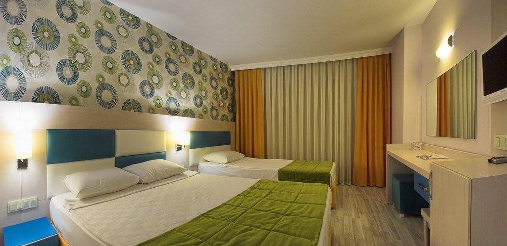 Сейчас нахожусь в данном отеле, это ужас , не портите себе отпуск, я никогда не писала отзывы, но тут я просто должна предостеречь новых отдыхающих!!!! Еды нет от слова совсем, мы голодные ходим третий день, вместо мясного дают отвратительные соевые котлеты, туи приехала женщина и в первый день отравилась Я каждый год отдыхала в турции, и понимаю что беря отель 3-4 звезды не ждите шика и креветок с шампанским , но элементарно кормить простой едой же должны!!!! В отеле грязь, в баре всегда нет пива и алкоголя, только слышишь от барменов- финиш!!! Брали у оператора интурист, отвратный оператор , не переселяет нас и просит доплату 500 евро с человека, сегодня все русскоговорящие туристы устроили бунт и разборки , писали претензию , но толка нет , сейчас вернулась с обеда , на обед макароны булгур и не свежие овощи с мишками , на завтрак не всегда яйца есть , сыра нет , только овощи и хлеб, за 6 ночей не разу в номере не убрались, в отеле хлев!!!! Впервые разочарована турцией и больше не ногой !!!!!! Отель тянет на 1 звезду и то много для него
