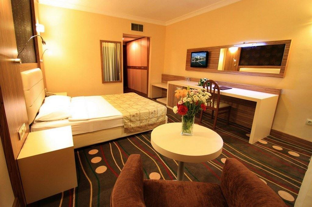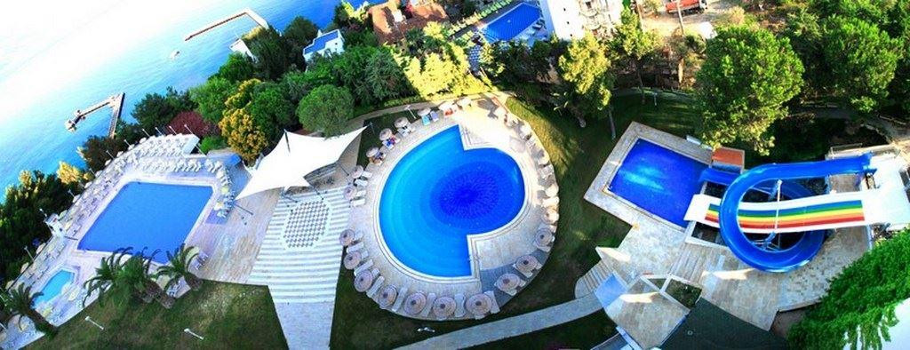 Ни при каких обстоятельствах, ни за какие деньги не выбирайте этот отель!!!! ВЫ никогда больше не захотите в Турцию. Номера: заселяют без полотенец, ни единого, нужно выбивать. За 10 дней отдыха ни разу не сменили белье и не поменяли полотенца. Каждый день до 18 вечера не было горячей воды. Уборка номера - это только вынос мусора. На первом этаже отеля проживает обслуживающий персонал на нарах и вы будете каждый день ходить мимо и смотреть на этот базар вокзал. Здание в 8 этажей. 4 лифта, 2 из которых всегда сломаны. Рестораны: их нет!!!Столовые в Лазаревском чище, уютнее и вкуснее. Грязная, битая посуда и которой все время не хватает. Мебель грязная и старая. Еда, еды вы там не найдете! Ёе просто нет! Гнилые помидоры и старый переросший огурец, как для скота. Мяса нет, варёная курица и вы будете за ней стоять в очереди. Детей кормить вообще нечем. Картошка пюре, роллтон из порошка. Фрукты дикая слива, пару раз яблоки за 10 дней, арбуз. Очень плачевная ситуация. Мы понимали, что не все нам будет нравится, но то, куда мы попали, это ад. Море: с детской коляской вы не сможете спуститься к морю. Заход в море каменистый и грязный. Лежаки старые и все время грязные. Понтон тот, что на фото, это из соседнего отеля и вас туда не пустят. Ваш будет старое бетонное сооружение все в дырках и без спусков и подъёмов. Есть только 2 ржавые лесенки с плиты, где стоят шезлонги. На пляже бара нет!! А ходить наверх к бассейну за коктейлями, у вас пропадёт желание уже через день. Отвратный алкоголь, отвратное пиво. Территория и анимация: все в сильном запустении, очень грязно. В 11 утра, в зонах отдыха все еще был мусор после ночных посиделок и гулянок. Везде битая плитка у бассейнов, душевых, туалетов. Неработающая сантехника, краны. Малюсенькая детская площадка, старенькая и грязная. Детям делать совсем нечего, днем анимация выдает им карандаши и альбомы для рисования, вечером одни и те же песенки по кругу. Контингент отеля турки и арабы среднего достатка. Все голодные и из-за этого злые. Почти каждый день ездили на маршрутке в город Кушадасы, приблизительно 10-15 мин. Там ели и гуляли. Отдыхали с 28 июня по 8 июля 2019. За двоих взрослых и ребенка 2 лет заплатили 98 тыс. Считаю, выкинули на ветер.