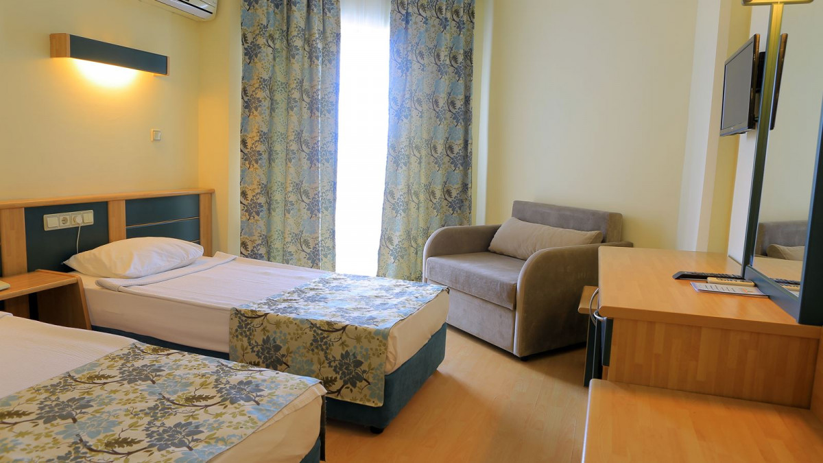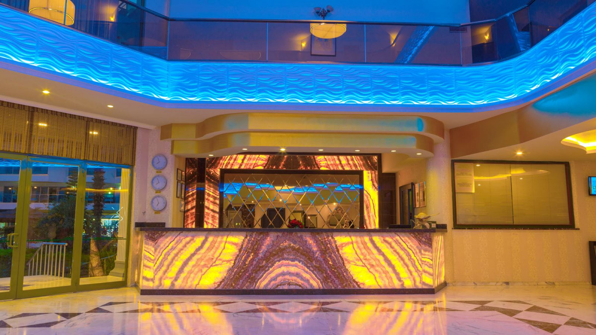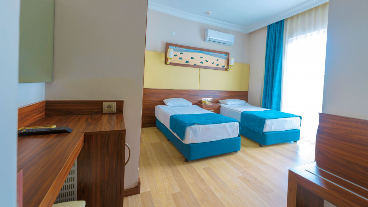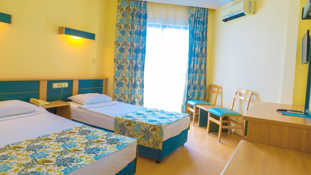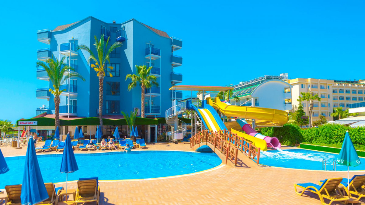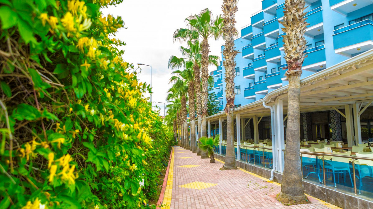 Отдыхали с 14 по 22 сентября, два взрослых и ребёнок. От аэропорта днем ехали часа 2-2,5, заезжали в три отеля до нас, обратно выезжали рано утром но по времени ехали так же, было много заездов в другие отели. Проживали в корпусе с рестораном. Отель и номера уставшие, но в номере убирались каждый день, меняли полотенца, оставляли воду. Кондиционер рабочий, сейф бесплатно. По питанию, курица, индейка, телятина, рыба были всегда, в четверг морепродукты. Множество гарниров, овощи, фрукты, сладости. Для четвёрки вполне достойно. Алкоголь разный, но мы пробовали только пиво и белое вино. На территории два бассейна, возле ресторана всегда мало народу, во втором бассейне всегда есть народ, но лежаки свободные найти можно. На каждом бассейне спасатель, спасатели реально следят за обстановкой, по необходимости делают замечания. Горки работают в определённые часы. Ещё есть детский бассейн с горками. Для детей мини-клуб и площадка с навесом. Аниматор русская девушка. Вечером после ужина все дети собираются на площадке играют, в 21.00 детская дискотека. Большая часть персонала русскоговорящие, так же как и отдыхающие. До моря идти 5 минут с ребёнком. Пляж песок, мелкая галька. Можно найти полностью песчаный спуск, можно с мелкой галькой, заход везде плавный. Ребёнок спокойно бегал босиком. Лежаков кажется много, но мы всегда лежали на полотенцах рядом с морем. Так же на пляже бар, с 12 часов дают фастфуд. Море было тёплое, чистое, но пляж грязный, везде бычки и одноразовые стаканчики, хотя урн для мусора достаточно. Несколько раз видела что сотрудники отелей ходят и собирают мусор, но вспоминаем "чисто не там где убираются, а где не мусорят". Рядом множество магазинов, принимают карты мастер карт, юнион пей, в некоторых мир, можно оплатить даже сбп или переводом. Мы ходили в "Тайм центр", идти минут 20 с ребёнком, есть надземный переход с лифтом. Там же базар, небольшой бульвар и мечеть, вечером очень красиво. При выборе этого отеля главное не забывать что едете в четвёрку, и на некоторые недочёты сразу смотреть проще.