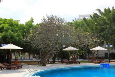 Отдыхали в марте 2019г. Заселили сразу, как приехали, в 3 ночи, взяли депозит 100 долларов, вернули при выселении без вопросов (даже номер при нас не смотрели). В номере большая кровать, человека 3 могло бы на ней спать, но матрас достаточно жесткий, белье чистое, только в последний день нашли небольшую дырку в наволочке. Полотенца 4 шт, гид предупреждал, что нужно быть внимательным, что могут быть удержания с депозита за пятна, по факту следили за чистотой полотенец, пару раз приходилось возвращать полотенца, так как на них были дырки и пятна, меняли без проблем. В номере меняли каждый день зубные щетки, шапочки для душа, полотенца, мыли полы, заправляли кровать, но вот не меняли постельное белье ни разу за 6 дней отдыха. В номере есть телевизор, но мы так и не разобрались как его включать, нам он и не был нужен особо. В номере есть бесплатный вайфай, фен, сейф, дозаторы с шампунем и гелем для душа, которые каждый день были наполнены. Необычно было то, что душ располагается в туалете, не было ванны или постамента для душа, вода уходила в сливные отверстия на полу около туалета. Вода была горячая, но нужно было минуты 3 ее пропускать в душе, в раковине вода была горячая всегда, не нужно было выключать и ждать. Есть в номере кондиционер, который исправно работал и не сдувал нас. Из минусов могу отметить то, что в номере слабое освещение, мебель не очень новая, но все аккуратно, чисто, исправно. Также из минусов могу отметить то, что завтраки были голодными. Мы летели по системе фортуна 3 звезды, заселили нас в 4 ку, чему мы были рады (но фактически это 3 ка). Каждый день выбор блюд на завтрак был крайне мал, была в основном китайская еда, лапша и рис с небольшими кусочками, которые вроде как напоминают мясо, жаренные яйца (выдавали строго по 1 яйцу на человека, одна женщина, чуть истерику не устроила, чтобы дали два, тогда только дали), булочки были и бисквит, супы, был только один напиток на завтрак чай или соевое молоко (чередовали каждый день), был арбуз, который выносили раза 2 за завтрак в определенное время, тогда вся толпа его за секунду сметала, нам посчастливилось 1 раз (в последний день) его попробовать. Такой завтрак нам помогал не умереть от голода в ближайшие два часа, хуже завтрака нигде не видела. Территория отеля красивая: большой бассейн, везде зелень, есть зона для отдыха (лежаки и зонтики), много свадебных фотосессий увидели за это время на территории отеля. Пляж через дорогу в 5 мин ходьбы, 3 из которых, занимает проход через оживленную дорогу. Пляж огромный и чистый, с прозрачной водой. На пляже есть платные лежаки, также от солнца можно укрыться под пальмами (но есть риск того, что может кокос упасть). Плюсом является то, что на пляже очень мало людей, хотя нам было это очень удивительно, ведь пляж действительно достойный. За все время отдыха на нем, мы не увидели пляжных блох, о которых туристы писали отзывы, а также постельных клопов, о которых писали, что они водятся в кроватях. До Дадунхая 20 минут на 8 ке, остановка со стороны пляжа (3 юаня на человека, нужно отдавать без сдачи, так как сдачу не выдают), до Домов деревьев 40 мин на 25 автобусе. От отеля можно уехать в 3 ресторана, на массаж, в магазин сувениров, трансфер туда и обратно бесплатный, ехать 5-15 мин, приезжают минут через 10 после звонка от гида, который находится в отеле с 9 до 18.00. В целом отелем остались до