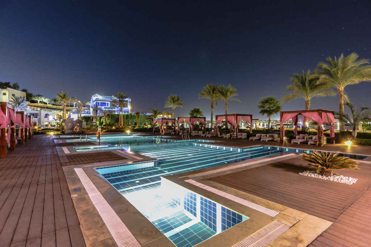 Отдыхали в этом отеле с 9 по 15 сентября 2025г. Отель классный, все отлично, питание супер, каждое утро семга, хамон, бастурма, прекрасные жареные баклажаны и т.д. Фреш клубника, манго, апельсин, остальное стандартно как везде, только ёгуртов много, в том числе Данон. Обеды и ужины - супер, баранина, гриль рыба разная, были вместе с друзьями, они до этого были в Риксосе - сказали, что здесь питание лучше. Есть все!!! Заселили сразу, бар в номере каждый день пополняют спрайт, пиво, кола, фанта по запросу сколько хочешь у уборщика. Таф Таф на пляж через 5 - 7 минут. Ходили вниз к пляжу пешком, а обратно на автобусе или электрокаре. Вай Фай на территории везде и в номерах. Мебель старовата но добротная и уютная впрочем как и везде и отелях Шарма. На это внимания с женой вообще не обращали. Браслеты не срезают, перед отъездом на обеде подошел шеф - повар, уточнил через переводчика все ли хорошо. В Египет ездим с 2010 г. по 2 - 3 раза в год. Это один из лучших отелей