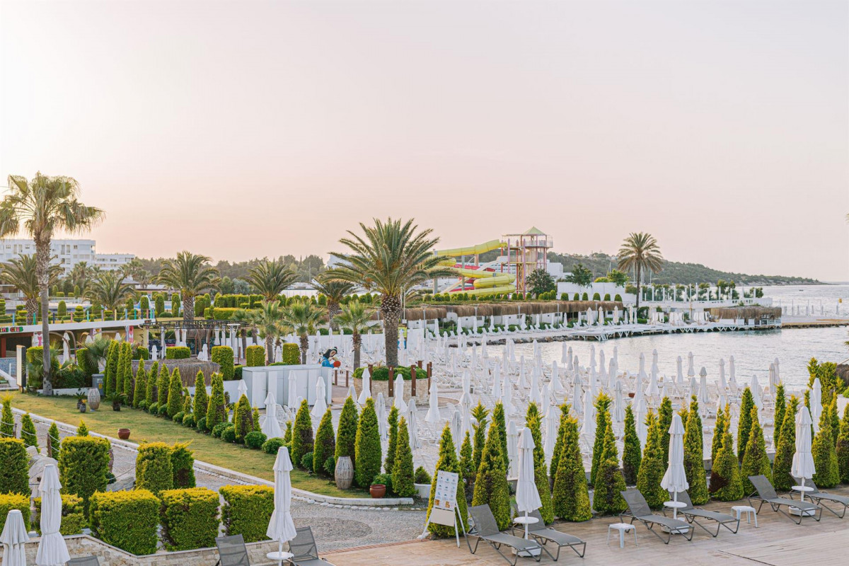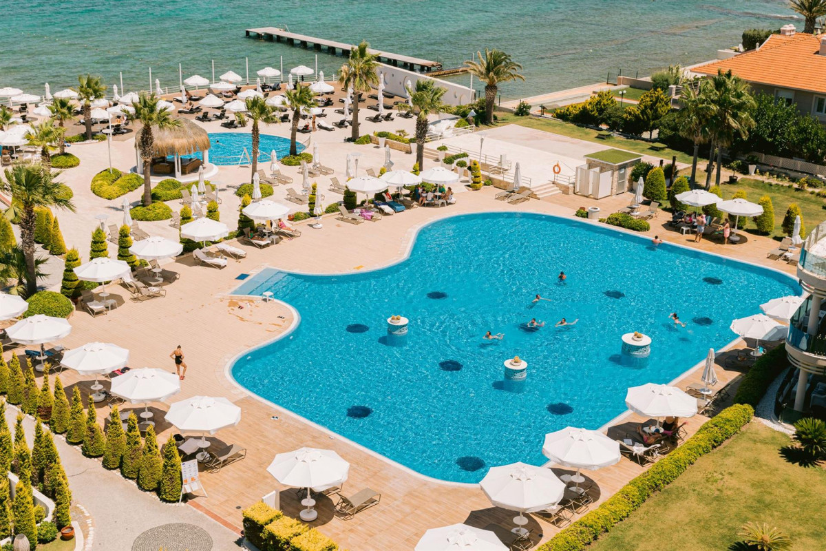В 90 км от аэропорта г. Измир, 4 км от поселка Чешме, 5 км от центрa Алачаты на берегу моря.