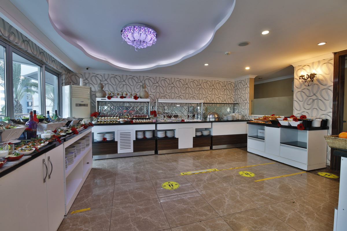 Отдыхали с 20 по 31 мая 2024 года.От аэропорта с заездами в разные отели ехали 3 часа,что очень утомило.У отеля 2 корпуса.В первом,который ближе у трассе,столовая,бассейн и бар.Столовая находится на втором этаже,при этом в маленьком внутреннем зале основная еда и бар с алкоголем.Дальше необходимо выйти на балкон, подняться вверх по ступенькам,чтобы взять то,что жарят на гриле и напитки,юппи,чай,кофе.При этом подносов нет. Здесь тоже зона столовой для курящих.Очень неудобно и не продумано.Люди стадом ходят с тарелками и чашками туда-сюда.Официант может тебе один раз принести алкоголь,но если ты его не отблагодаришь,больше не подойдет.Официанты- молодежь,по русски не понимают.Еда очень однообразная,некоторая очень странная.Супы и каши есть невозможно.На гриле все пережаренное до черна.Основное- курица,какие то потроха.На на гриле овощи и крылышки,была печень горькая.Фрукты одни и те же,груши и яблоки твердые не вкусные,апельсины сладкие,но мелкие и с толстой кожурой.Во втором корпусе тоже есть небольшой бассейн,но он расположен на повороте дороги,там постоянно загазованность.Мы с боем получили номер во втором корпусе,все балконы которого выходят на проезжую часть.Первые этажи отеля сданы под магазины,тишины не ждите.А вечером со всех отелей вокруг с грохотом орет музыка,если хотите тишины и релакса,вам не сюда.До пляжа 7 минут по замусоренной дорожке между другими отелями.На пляже есть бар с бургерами,гезлеме и напитками.Лежаков всем хватало всегда.Заход в море так себе,надо приноровиться.Плиты и камни.Если уйти влево для тех кто плохо плавает две запруды с песком.мелкие.Море чистое только с утра,когда начинаются волны приносит горы мусора,именно мусора,пластика,пакетов и т.д.Пляж чистят плохо.Второй раз не поедем и никому не посоветуем.Отстой полный.