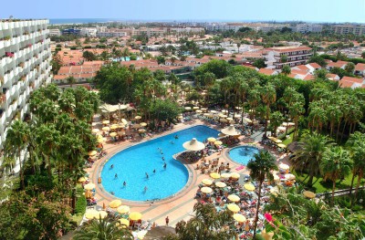 В 30 км от аэропорта г. Лас Пальмас, в Плайя дель Инглес, недалеко от автобусной остановки и торговых центров.
