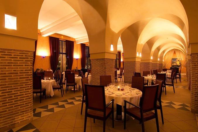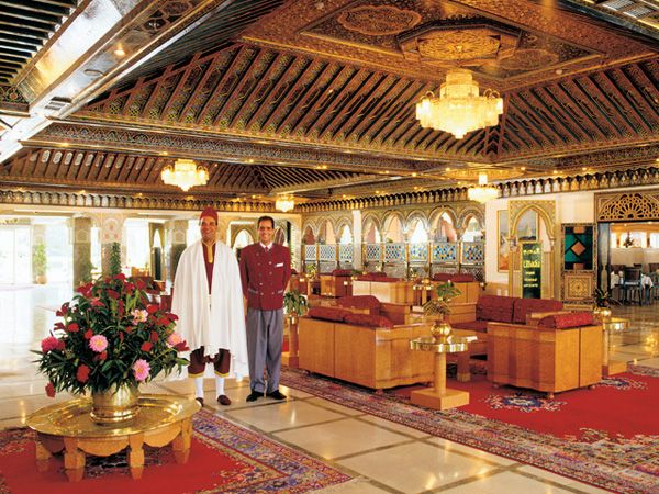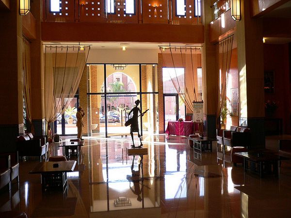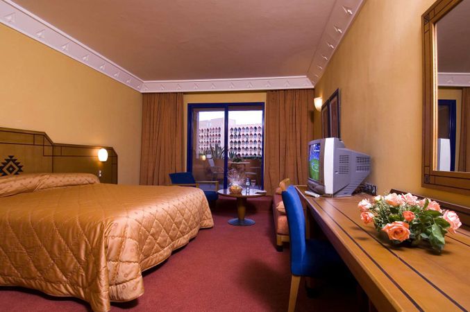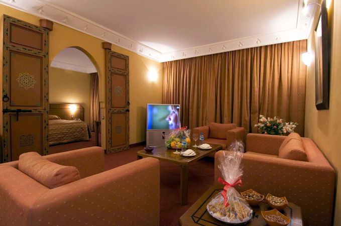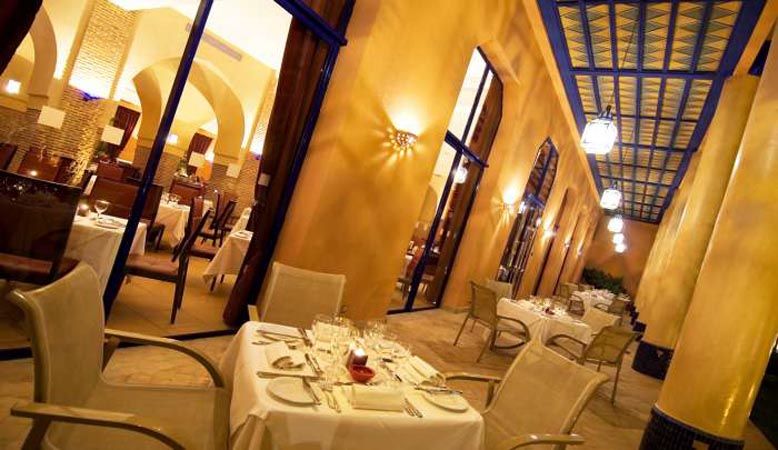 пансионный ресторан Le Jacaranda в саду (международная кухня), ресторан a la carte Le Tatawi с террасой, бар у бассейна Le Jnane, пиано-бар с живой музыкой Le Brown Bar Douiria, бар L’Actor’s Lounge.
