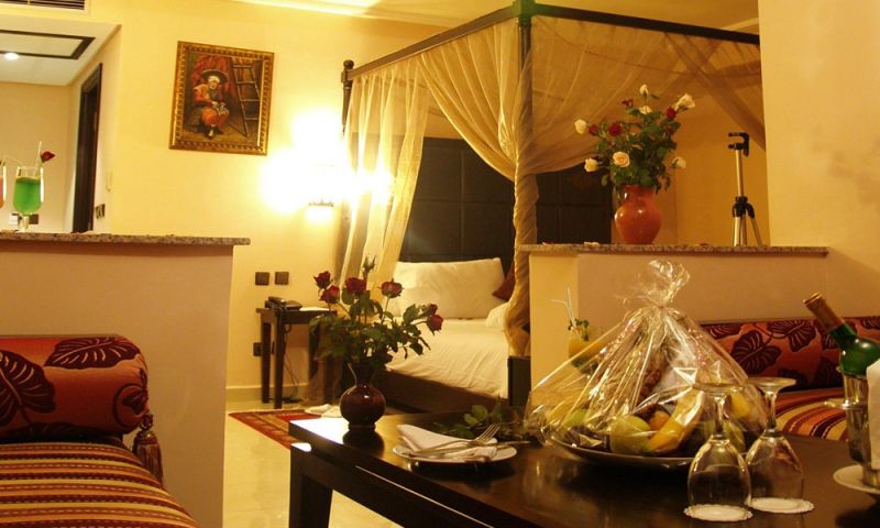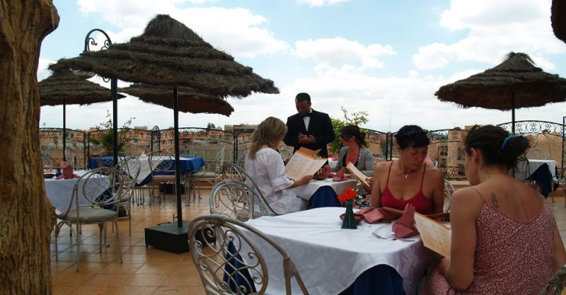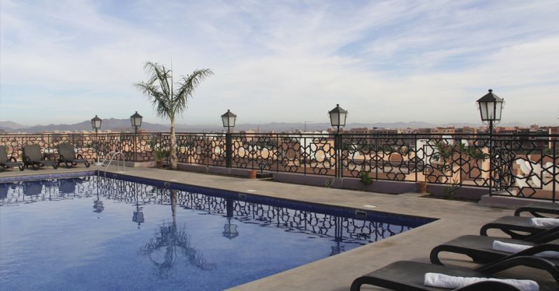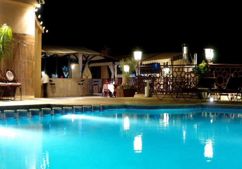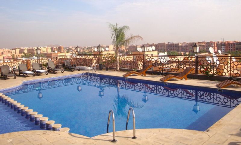 открытый бассейн на крыше отеля с видом на город, панорамная терраса на крыше отеля с видом на город, площадь Jmâa El Fna и достопримечательности Медины, лифт, салон-парикмахерская, круглосуточное обслуживание номеров.