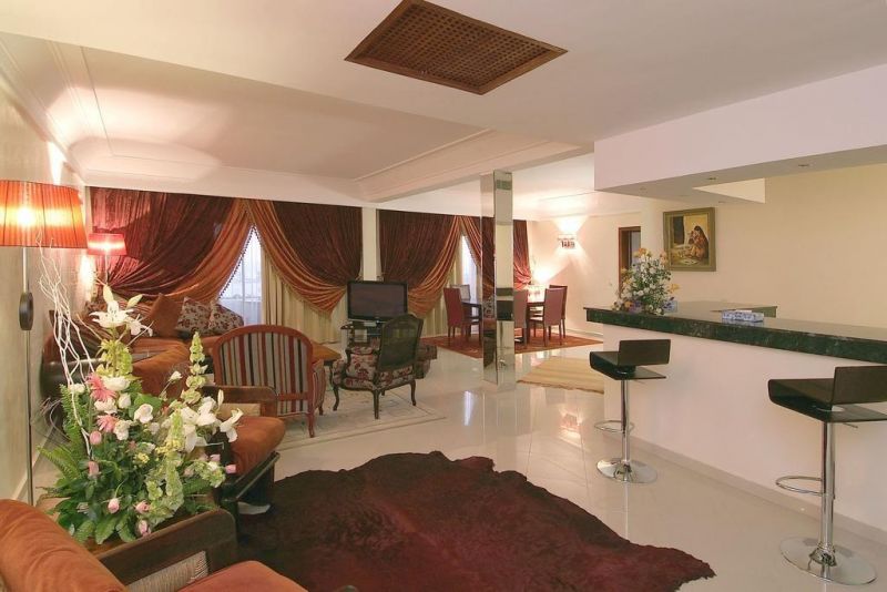 Junior Suite (55 кв. м, спальня с двуспальной кроватью, гостиная, ванная комната с ван- ной и джакузи, терраса со столом и 2 стульями, 2 телевизора, возможна дополнительная кровать (платно), вид на море или бассейн, макс. 4 взр.)