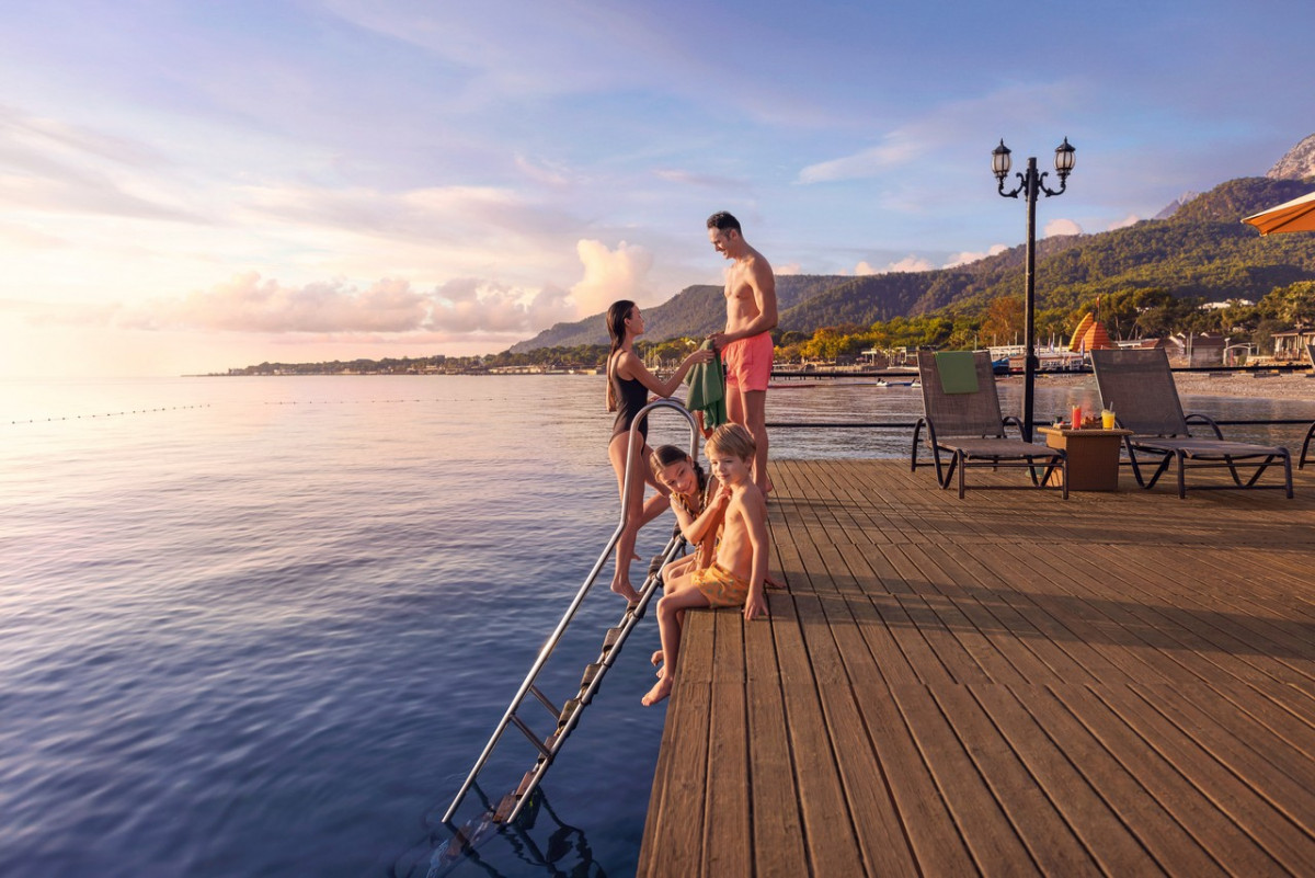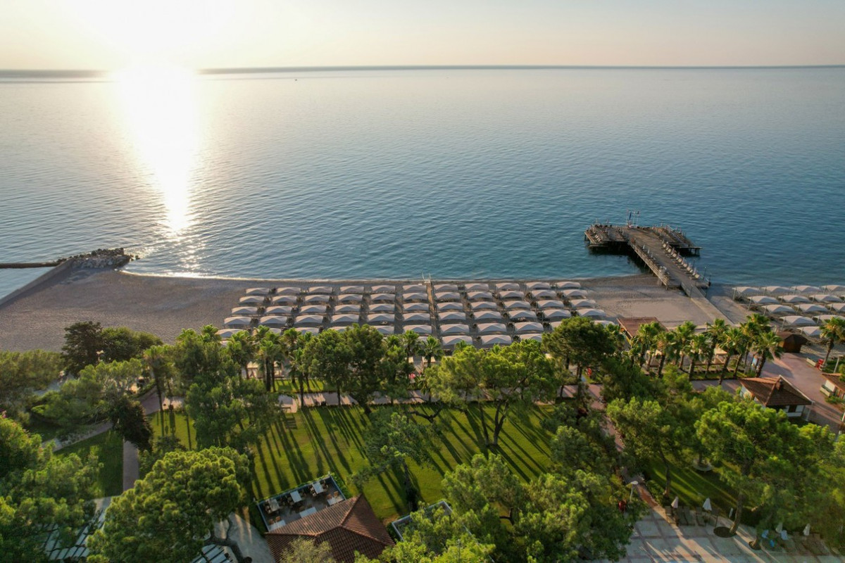 Вчера вернулись с отеля. Были с 7-18 июня. 3 взрослых, 2 детей. Номер дали 1430 семейный сьют с прямым видом на море. Отель идеален для тех, кто любит спокойный отдых. Лежаки всегда были свободны у бассейна, у моря приходилось занимать с утра. Из анимации для взрослых: йога, боча, волейбол, аквааэробика и дартс. Детская анимация отличная. Как в детский сад можно отдать в 10 и до вечера. Там и покормят, и в бассейн сходят с ними, в Динопарк возят, пикники на траве, рисуют, лепят. В общем, все для детей! На мини-диско много русских песен. Особенно детям нравился аниматор Айдар. Спасибо ему большое. Моя дочка 8 лет с удовольствием танцевала на мини-диско , рисовала на футболке, строила Лего, делала поделки. Отличный аквапарк. 3 малые горки и 4 большие. Из еды есть все: говядина мягчайшая, рыба, креветки, мидии, кальмары, пицца, лепешки, мороженое, десерты вкусные, дыни, арбузы, персики, клубника ящиками. Напитки везде по территории. Супы несколько видов! На завтрак каши. Капсульная кофе машина в номере. Из пожеланий: поставьте автоматы с кофе и чаем в разных частях ресторана. А то через весь зал идти с кипятком по залу, а иногда и на улицу опасно. Людей много. Можно и автоматы с соком поставить-разгрузить официантов. Видела, как берут пробы готовой еды, а также воды в бассейне. Никто во время нашего отдыха не болел. Никто не отравился. Это говорит о хорошем качестве еды и чистоты бассейнов!!! Вечерняя анимация была, ходили пару раз. Один раз была дискотека на пирсе, турецкая ночь, акробаты. За территорией кроме магазинчиков и супермаркета особо ничего нет. Вдоль моря погулять не получится, только по территории, она ограничена камнями с одной стороны и катамаранами с другой. Зато все без отельных браслетов. Можно съездить в 5ММигрос в Анталье. Такси 40 долларов. Мы вызвали Яндекс. Вышло 900 лир примерно. Можно на автобусе, если без детей. Вай-фай хороший, не отключили даже до вечера в день выезда. Море теплое. Вода день кристальная, день волны, иногда мутная. Кстати, номера все новые. С кондиционером мы так и не разобрались. Рядом есть мечеть, с главного корпуса не сильно слышно. Как в дополнительном -не знаю. Звукоизоляция хорошая. С детьми, думаю, можно рассматривать этот отель.