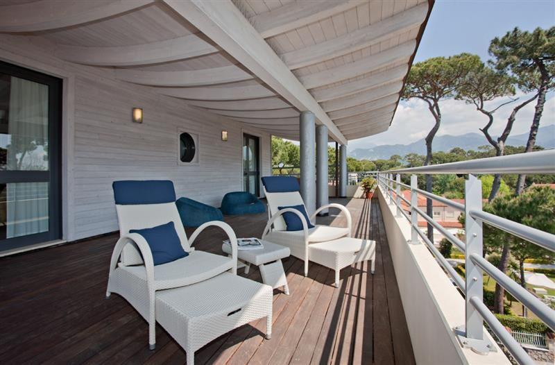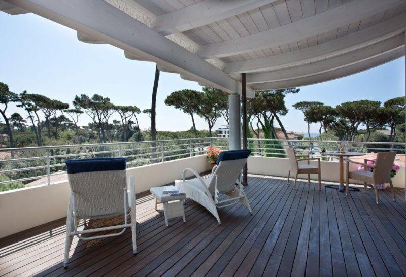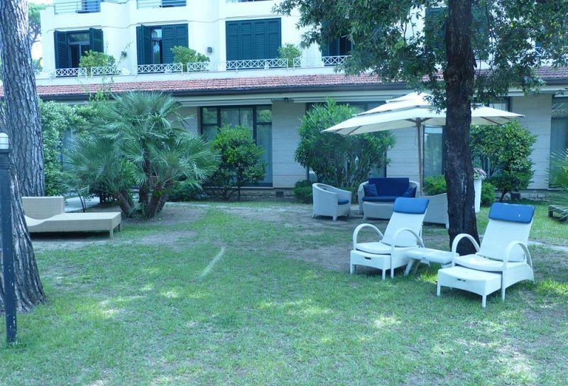 в тихом месте в зеленой зоне квартала Рома Империале элитного курорта Форте-дей-Марми, в 200 метрах от пляжа и в 400 м (5 минутах ходьбы) от центра с магазинами, барами и ресторанами.