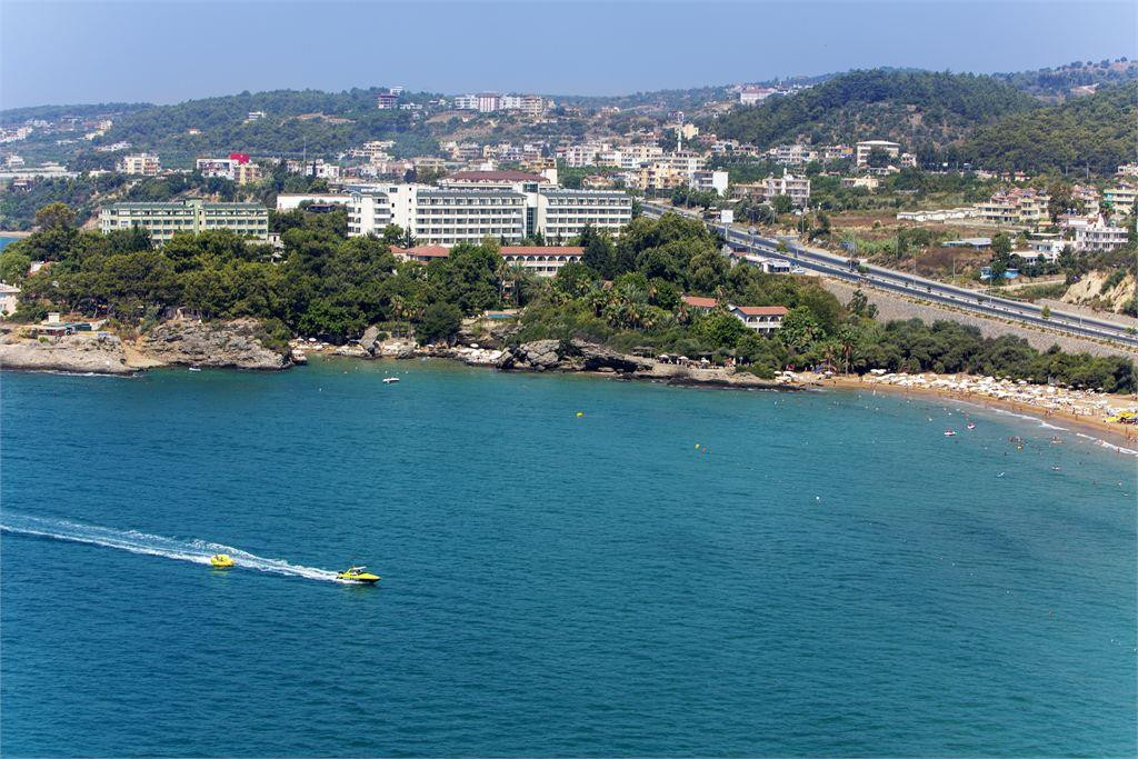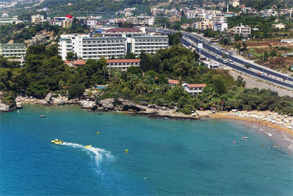В 99 км от аэропорта г. Анталья, в 24 км от г. Аланья, в 3 км от поселка Авсаллар, на берегу моря.