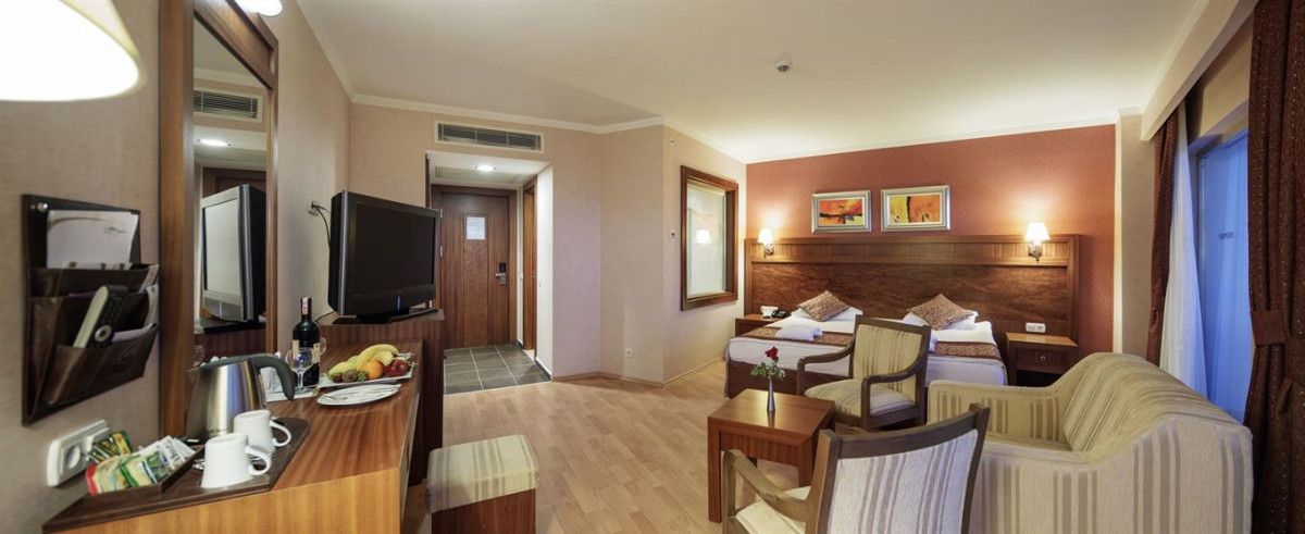 Отличный отель. Территория небольшая, но очень уютная. Отель 16 , соответственно соотечественников (россиян) почти нет. Очень тихо, очень комфортно. Основные гости немцы, были англичане. По одной семье словаки и поляки. И ещё одна семья из России. Персонал естественно по-русски не разговаривает. Был один пожилой турок, из техников, более-менее сносно говорил. Для нас не проблема. Более-менее владею турецким. Отдых очень понравился. Поверьте есть с чем сравнивать. В коллекции и Амара дольче Вита и Дельфин Империал и Титаник де люкс Белек. Формат отдыха здесь совершенно другой. Полный релакс, тишина и уют. Для желающих отрываться не их вариант. Из минусов, да, звукоизоляция номеров слабовата. Но так как мы в номере только спим и заходим переодеться для нас абсолютно некритично. Питание хорошее во всех смыслах, единственно для меня лично маловато морепродуктов было. А-ля карт слабоваты. Но опять же с какими отелями сравнивать. В остальном без претензий вообще. Море рядышком. Пляж - песок. Хороший променад прогуляться вечером мимо отелей. В общем, понравилось всё. Для любителей спокойного отдыха и не ищущих в каждой мелочи негатив, очень рекомендую. Отдыхали в середине июня 2018 года.