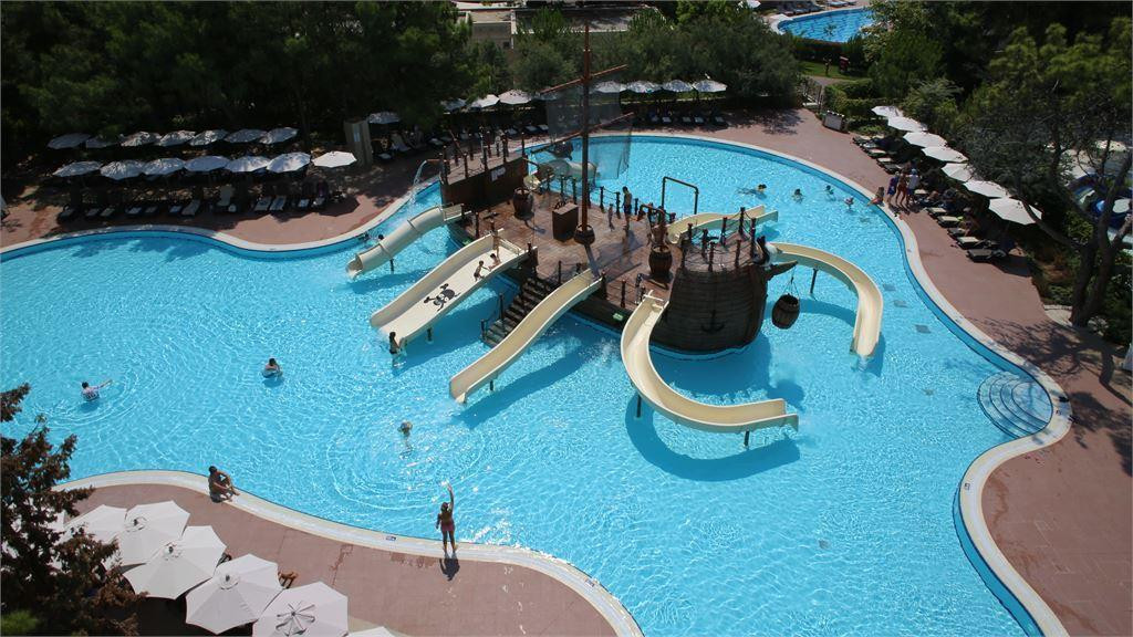 Вчера вернулись из данного отеля. Сняла звезду за работу персонала на ресепшене! При заезде - даже не поздоровались, молчу уже о «добро пожаловать» и какой-либо информации приветственной об отеле. Ни слова! Нам были не рады! Ходили по огромный территории искали где перекусить при заезде( злые и недовольные)))При выезде (он был у нас в 4 утра) я с вечера - обратилась на ресепшен, попросила собрать нам ланчбоксы, на что девушка сказала - идите и сами набирайте что-надо в «ночном супе» - сервис на высоте в общем. Все кого забирали утром из других отелей - Макс роял, и др. Были с пакетами брендированиями с завтраками с собой, а нам и бутылки воды не дали. Позорно считаю! . Срочно сменить персонал на ресепшене - это лицо отеля! Сидят в своем корпусе с ресепшеном - задрав носы. Отель неплохой. Красивая территория, большая. Всё ухоженно. Есть чем заняться в течении дня - настольный теннис, шикарный аквапарк и детский и взрослый, детская комната большая с разными вариантами для детей - там же детей кормят, персонал в детской комнате - умнички, обратят внимание на каждое дитя, вежливые, увлекут! Вот их нужно всех на ресепшен! Сауна/хаммам - интерьер класс, но там прохладно, нет заявленной температуры, почему не понятно. Вход к море крупная - огромная галька, но можно заходить с пирсов. Вода чистейшая, резко глубина, очень удобные лежаки на пляже. По питанию - всё как везде в нормальных турецких 5. Мясо, рыба, морепродукты были какие-то, много фруктов (клубника в шоколаде каждый день), были в начале сезона - очередь за едой постоянно скапливались (за омлетом, за рыбой, за пастой, за грилем) - в пик думаю будут очереди и еды не хватать. Самое вкусное - например, стейки из форели не успевали жарить, постоянно пустое блюдо было. Вкусную пасту готовил повар. Пиво в бутылках разных марок, алкоголя импортного куча, коктейли в барах. Но вот кофе зерновой хороший тяжело найти - в ресторанах основных не вкусный из автомата, на пляже тоже. Анимация интересная, фейверк, костюмы, артисты приезжие - не местные аниматоры, детская анимация отдельно в мини-клубе, живая музыка у бара. Вывод такой - смотря за какие деньги! Никакого примьер ультра всё включено - тут нет) как заявлено) но за разумные деньги - можно смело ехать.