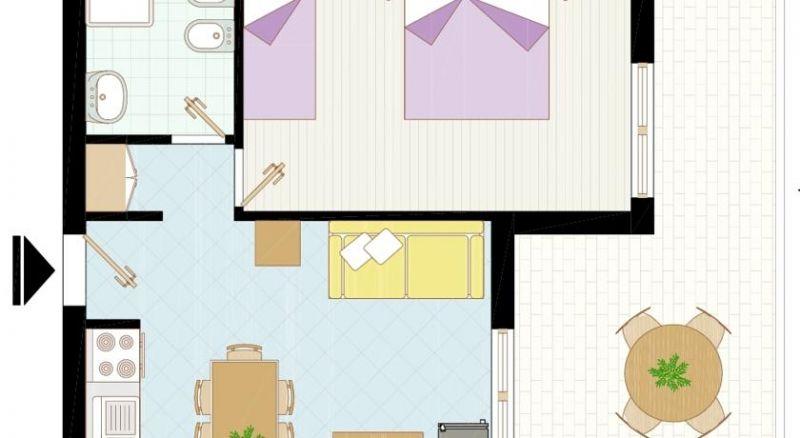 Небольшие обновленные двухэтажные апартаменты расположены в тихом спокойном месте в 400 метрах от центра города Бибионе и в 1,2 км от городского SPA-центра.