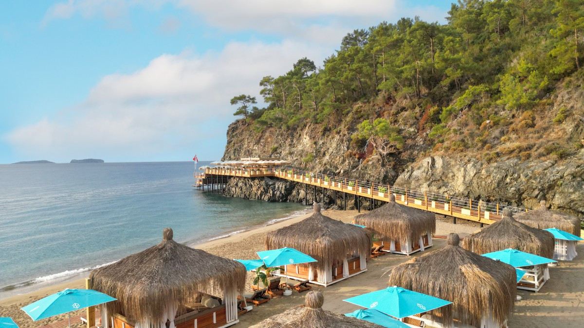 Мы влюбились в этот отель!отличный сервис,прекрасный пляж,бар на пирсе,это очень важно было для нас.Очень красивые горы вокруг ,море нереальное:прозрачная вода,красивого бирюзового цвета,я никогда такого моря в Турции не видела. Территория очень ухоженная,есть где погулять,всегда можно было посидеть около моря на диванчиках,это плюс.Ребенку очень понравился аквапарк,безопасный, интересный.Есть басссеин с морской водой подогреваемый,тоже очень плюс большой. По еде отлично прям,много рыбы,фруктов,а какая там кондитерская,это просто вау.Алкоголь весь импортный,коктели отличные!Понравился ресторан а-ля карт 24/7без записи, официанты хорошо работают, очень вкусное меню. Тренажёрный зал очень качественный. Обязательно вернёмся туда ещё!