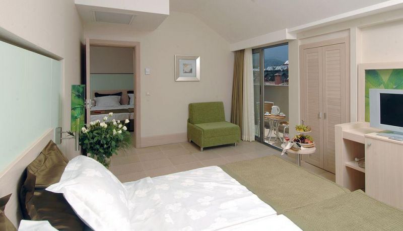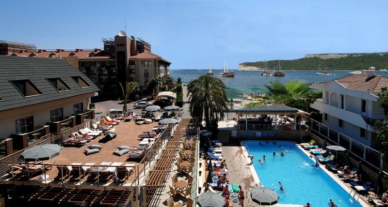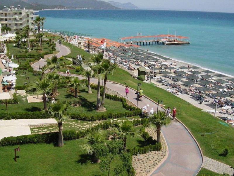 В 55 км от аэропорта г. Анталья, в г. Кемер, в 450 м через дорогу от cобственного пляжа.