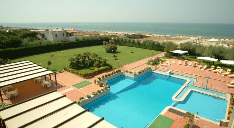 На курорте Байя-Домиция на Тирренском побережье. Расстояние от аэропорта Неаполя - 67 км, от аэропорта Рима - 161 км.