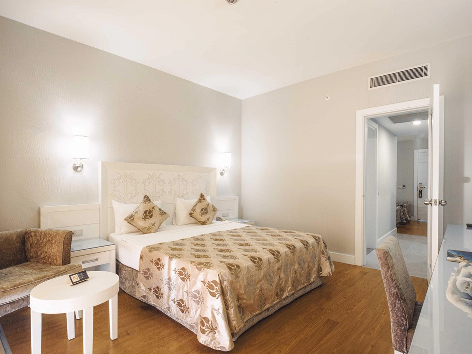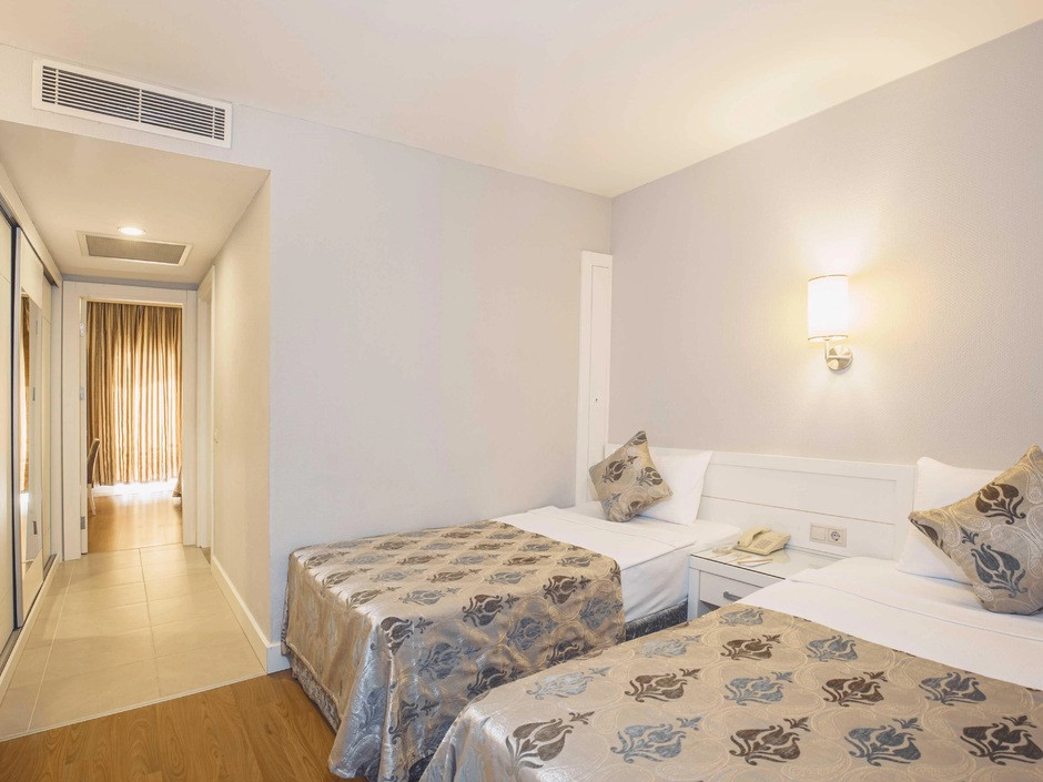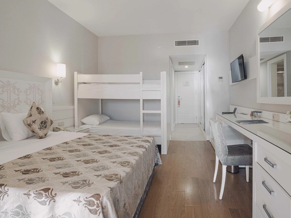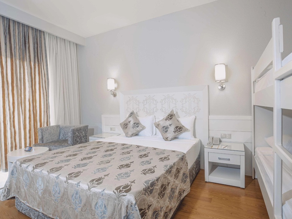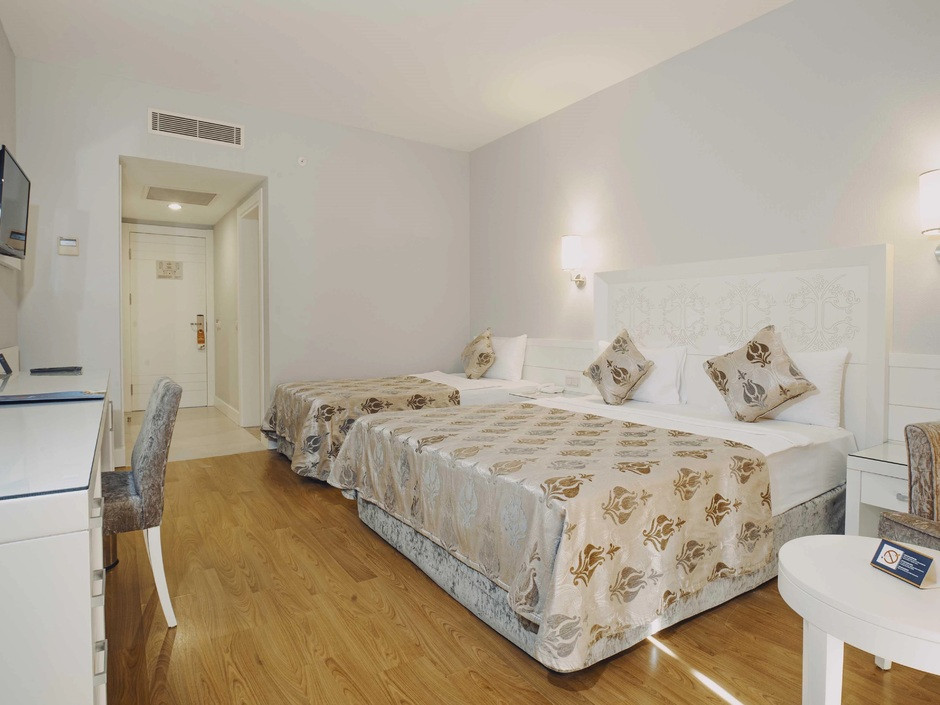 Считаю, что лучший отель по соотношению цена/качество. Есть ли лучше? Да, но дороже. Большие номера. Практически все одинаковые, отличаются видом на город/горы и на море/бассейны. При заселении нам предложили вид на море за небольшие чаевые, мы посмотрели номер и вид из него и дали за него 10 долларов. Те, кто не платил, у всех был вид на город, поле и как повезет с этажом. Мне 10 долларов за шикарный номер было не жалко. Уборка ежедневно утром и она идеальна. Пополнение мини бара тоже утром ежедневно (пиво, кола, сок, Фанта и вода). В открытом доступе всегда айран, кофе. Турецкий кофе с 8-24. Мороженое очень вкусное, вафли возле бассейна тоже. Еда вообще на 5, хоть завтрак, хоть ужин.