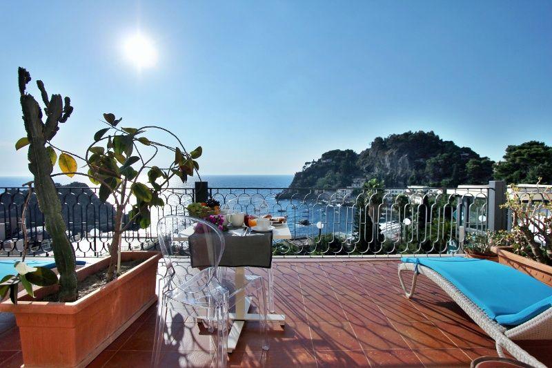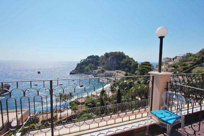 На восточном побережье о.Сицилия в центре залива Маззаро, на набережной Таормины, в 3 км от центра, в 150 метрах от пляжа.