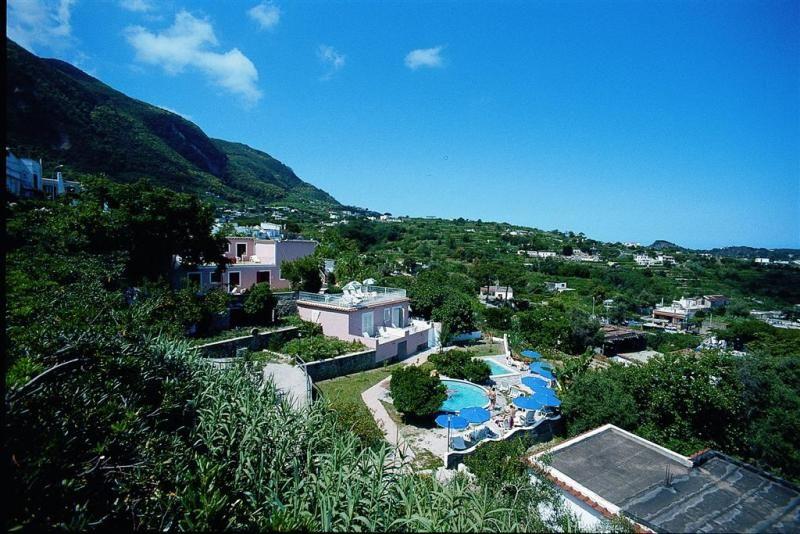 В 51 км от аэропорта Неаполя (17 км до порта Неаполя +32 км на пароме от Неаполя до острова Искья), в 6 км от порта г. Искья-Порто и в 2,5 км от другого порта на курорте Казамиччиола.
