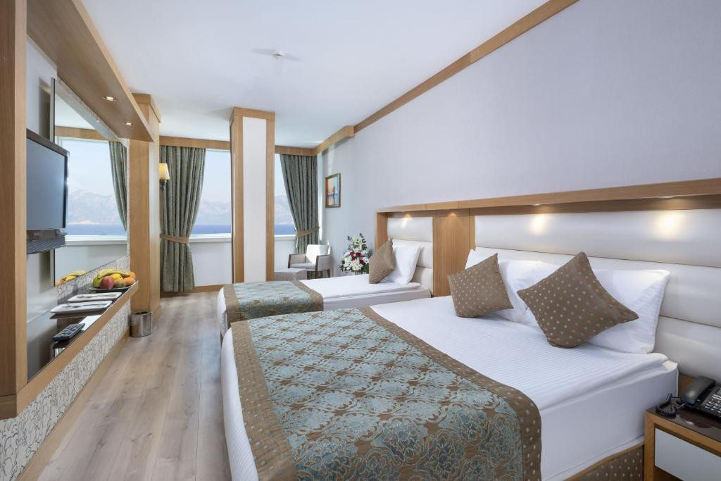 В 18 км от аэропорта, в 5 км от центра г. Анталья, на высоком берегу моря.