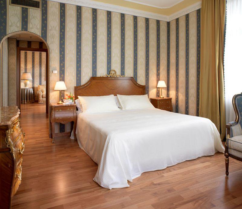К услугам гостей Bernini Bristol восхитительные номера и сьюты с богатым убранством: драпированные шторы, стены и мебель, обитые великолепным шелком и парчой, элегантный антиквариат, ковры, изящная живопись на стенах. Из комнат открываются замечательные виды на площадь Барберини, фонтан Тритона и исторический центр города. Роскошные номера верхних этажей Suite Luxury и Suite Presidential имеют собственную лоджию или террасу.