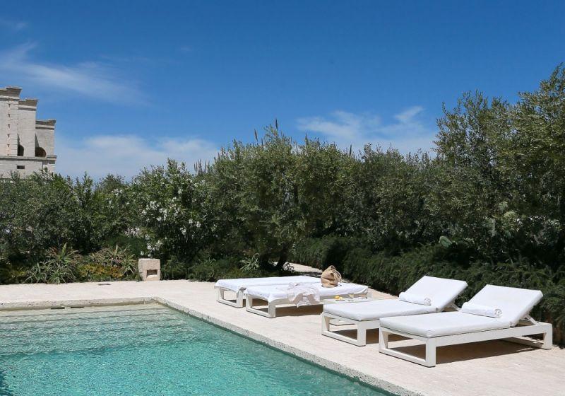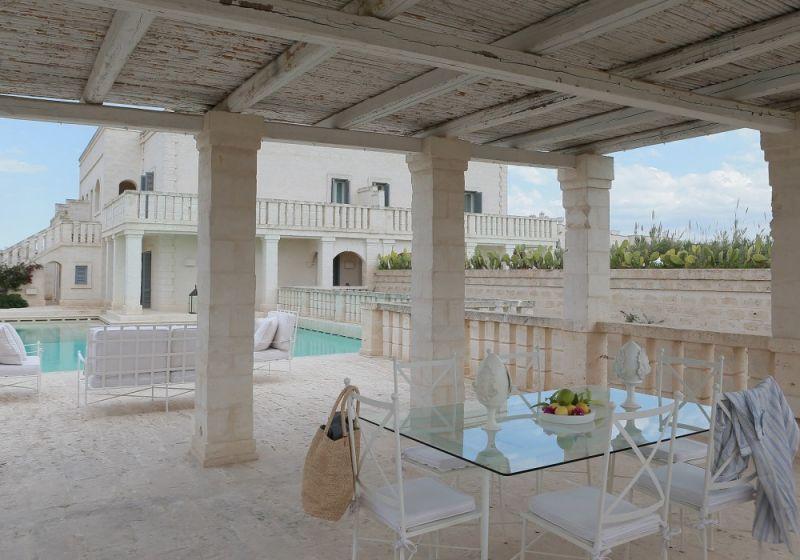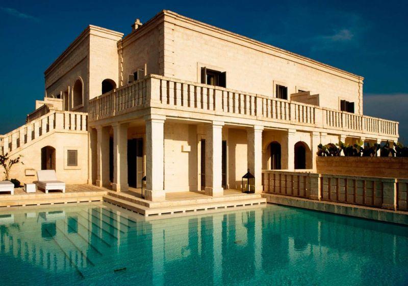 Villa Magnifica (250 кв.м, до 6 человек + 2 детей, трехэтажная известняковая средиземноморская вилла: первый этаж - полностью оборудованная кухня, столовая с каменным камином, гостиная с диванами, креслами, шезлонгом, док-станцией для мини-аудиосистемы, ЖК-телевизором, ванная комната для гостей; второй этаж - главная спальня с кроватью размера king-size с балдахином, ЖК-телевизор, гардеробная и ванная комната с двойной раковиной, двойной душ и отдельная ванна, вторая спальня с двуспальной кроватью или двумя односпальными кроватями с ЖК-телевизором, небольшая студия-гардеробная и ванная комната с ванной; цокольный этаж - гостиная со столовой, игровым столом, ЖК-телевизором и домашним кинотеатром, включая DVD - плеер и панель подключения, вторая спальня с двойной или двумя односпальными кроватями с душевой комнатой, дополнительная комната, которая может быть использована в качестве студии или массажного кабинета (на нижнем этаже есть французские двери в гостиной), диван-кровать или дополнительная кровать могут быть добавлены для максимального приема 8 гостей (с дополнительными расходами); большой частный сад с патио и бассейном (10х3,40 м.), терраса на крыше, кабельный интернет, Wi-Fi, телевизор с видео и музыкой по запросу, спутниковыми каналами и многофункциональной панелью подключения, 3 телефона (один беспроводной), сейф. Услуги и удобства включенные с 1 ноября по 25 марта: «massaia» на завтрак, уборка и услуги прачечной в вилле (за дополнительную плату), 2 велосипеда для взрослых; услуги и удобства включенные с 26 марта по 31 октября: трансфер при прибытии и выезде (аэропорт Bari и Brindisi), специальный местный консультант на весь период пребывания, специальная «massaia» на завтрак, уборка и услуги прачечной в вилле, 1 коробка для гольфа, 1 зеленая плата + 1 сумка для гольфа на человека (для гостей старше 16 лет), 1 велосипед на человека, 1 кабана в нашем пляжном клубе Cala Masciola, выбор плавательных бассейнов для детей, “Happiness Check” в Vair Spa для всех гостей старше 18 лет (требуется бронирование)