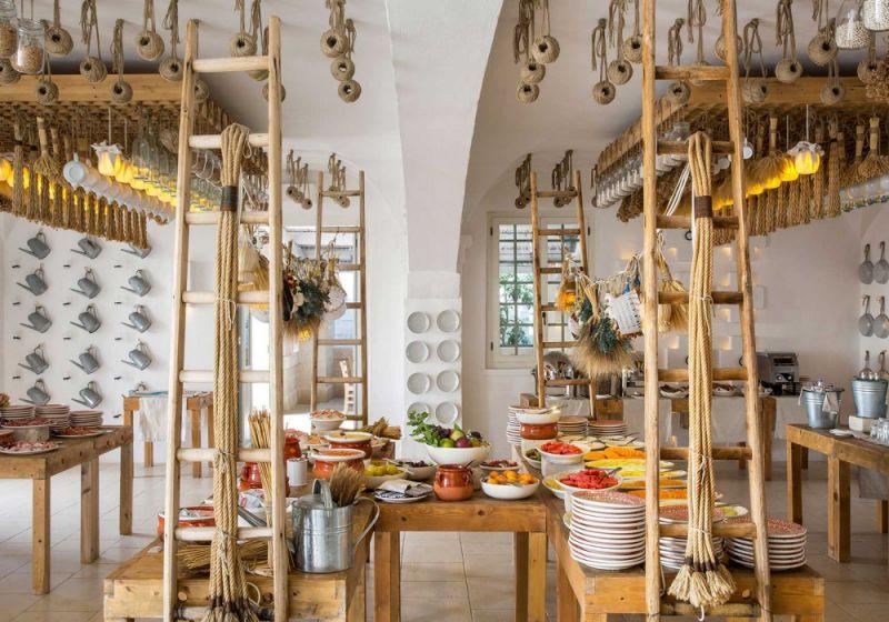 La Egnazia (125 кв.м, до 2 человек, 2 отдельные дневные зоны: большая гостиная с зоной отдыха и декоративным каменным камином, каменным обеденным столом, несколько диванов и большая спальня с большой кроватью размера "king-size" с прямым доступом к большой ванной комнате с полноразмерной каменной ванной и массивной двойной душевой кабиной (двойная раковина, динамики подключенные к аудиосистеме телевизора), кабельный интернет, Wi-Fi, ЖК-телевизор с видео и музыку по запросу, спутниковые каналы (включая Sky Sport) и многофункциональную панель подключения, 3 телефона (один беспроводной), сейф, мини-бар, по запросу предоставляется услуга La Egnazia, которая может быть соединена с комнатой Corte Bella, частный бассейн и внутренний дворик «секретный сад», оборудованный столом, стульями и шезлонгами, частная и полностью оборудованная терраса)