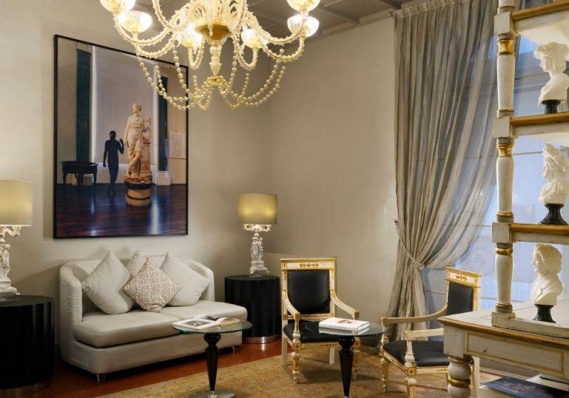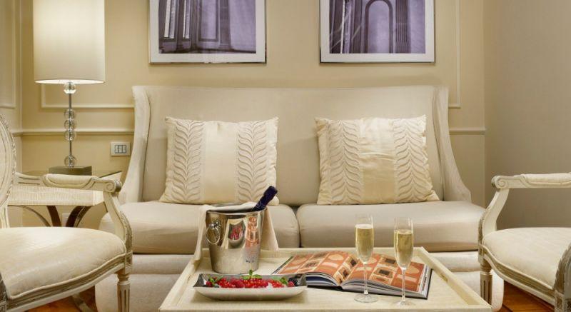 Two Bedroom Suite (два смежных люкса по 45 кв.м, вид на Виа дель Корсо/на пл. Джильо, кровати (200х120), джакузи, кофемашина, DVD-плейер, доступ в Интернет (Wi-Fi/LAN-кабель), по прибытии бутылка тосканского вина, корзина со сладостями и фруктами, доп. услуги)