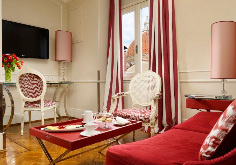 Duomo Suite (45 кв.м, вид на Собор, Купол Бренеллески и Колокольню Джотто, кровать (200х200), джакузи, кофемашина, DVD-плейер, доступ в Интернет (Wi-Fi/LAN-кабель), по прибытии бутылка тосканского вина, корзина со сладостями и фруктами, доп. услуги)