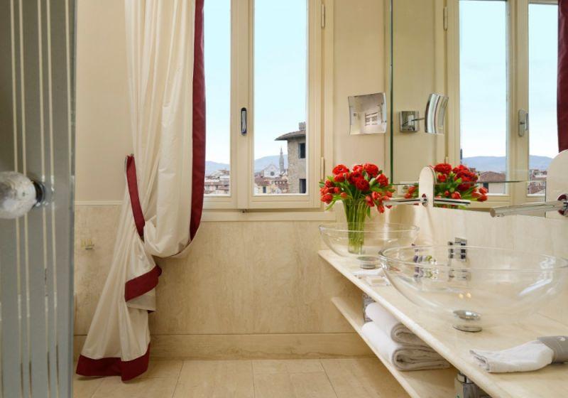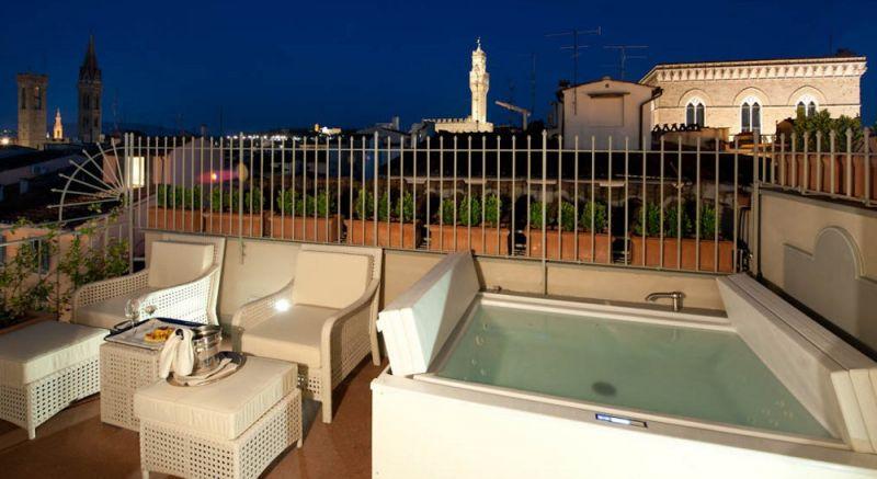 Penthouse Apartment (115 кв. м, в пентхаус входят люксы Bargello и Duomo Suite и Deluxe Panorama, вид на Купол Брунеллески, колокольню Джотто, Св. Лаврентия, Санта-Мария-дель-Фьоре, Палаццо Веккьо, С. Кроче, Фьесоле и площадь Микеланджело, две кровати king size и круглая кровать 250см, ванные с джакузи, доступ в Интернет (Wi-Fi/LAN-кабель), кофемашина, DVD-плейер, по прибытии бутылка тосканского вина, корзина со сладостями и фруктами, доп. услуги)