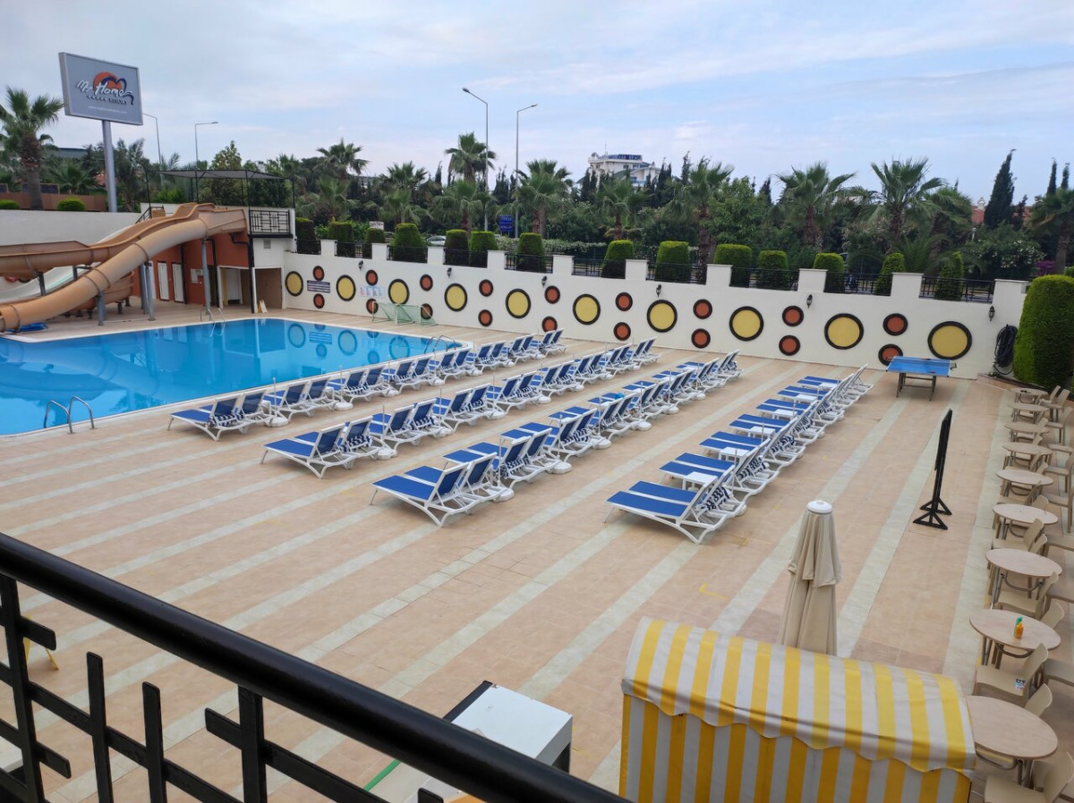 Отдыхаем на данный момент по рекомендации тур оператора Anex с 01.07 по 11.07.2025 с маленьким 11 месячным ребенком. В Турции далеко не первый раз: !!!!Прочитайте внимательно , перед тем как бронировать данный отель! 1 . До моря!! минус: Был сделан замер в метрах от выхода из отеля до входа на территорию моря принадлежащему отелю до лестницы 750 м минус: Если вы едите с маленькими детьми , колясками или у вас болят ноги -100 раз подумайте. Идти очень прилично плюс крутой спуск в ввиде лестницы. А также не удобных переход через дорогу. плюс: Пляж песочек. минус: питание на любителя, не особо свежее на пляже, как показалось лично мне(бургеры). плюс: безалкогольные напитки в доступе с 10:00 часов. плюс: душ и помыть ноги присутствует. 2. Отель! минус: хамы администраторы, предупреждаю русский знают в совершенстве, но будут делать вид, что не понимают. минус: воровство здесь случай не новый. Не покупаешь сейф, деньги забирают, даже вещи. За эту неделю у каждого практически из номера что-то пропало. Говоришь про полицию всем все равно. минус: гид! не меняйте у него лиры, с прекрасным умным видом предлагает за 2.6 , говоря что это курс по турции, по факту к рублю 4,4. минус: 2 корпуса, чтобы выйти тебе обязательно нужно пройти к 1 корпусу на ресепшен через мост. плюс: расположение к магазинам, рынкам, базарам по средам близкое. плюс: номера новые, чистые, приятные. минус: если номер в корпусе, где бассейн и выходит балкон не на море, вы попадаете на другой отель, сна у вас не будет до 23:00-00:00, тк сзади у отеля расположена развлекательная зона. минус: с 4 утра будете вскакивать от молитвы, притом очень громкой и долгой. минус: бар отдельное искусство, он один около бассейна, алкоголь очень противный, размешанный. Местный алкоголь, сразу напишу, уважаю и во всех отелях всегда все радовало; тут пить невозможно. минус: развлекательная программа, можно написать таковой и нет, для детей кроме дискотеки она вовсе отсутствует. Второй бар на лобби с 10:00 до 18:00. плюс: воду простую раздают в любом количестве. плюс: водные горки, это реально единственное наверное что радует. плюс: маленький детский бассейн для малышей. минус: еда на любителя, вроде вкусно, но на третий день начинает подташнивать. Для детей отсутсвует. плюс: пирожные очень вкусные. плюс: дыня, арбузы да и вовсе фрукты отличные. минус: лифты ломаются , застревают. На такой большой корпус их мало. минус: вход в бассейн нужно пройти через лифт или лестницу напрямую нельзя.